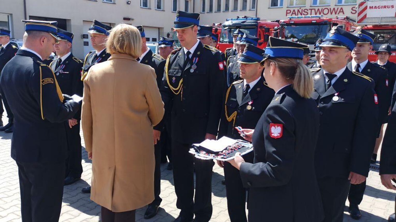 Wicewojewoda A. Olkowska – Jacyno dziękując strażakom życzyła, by każda akcja miała szczęśliwe zakończenie.