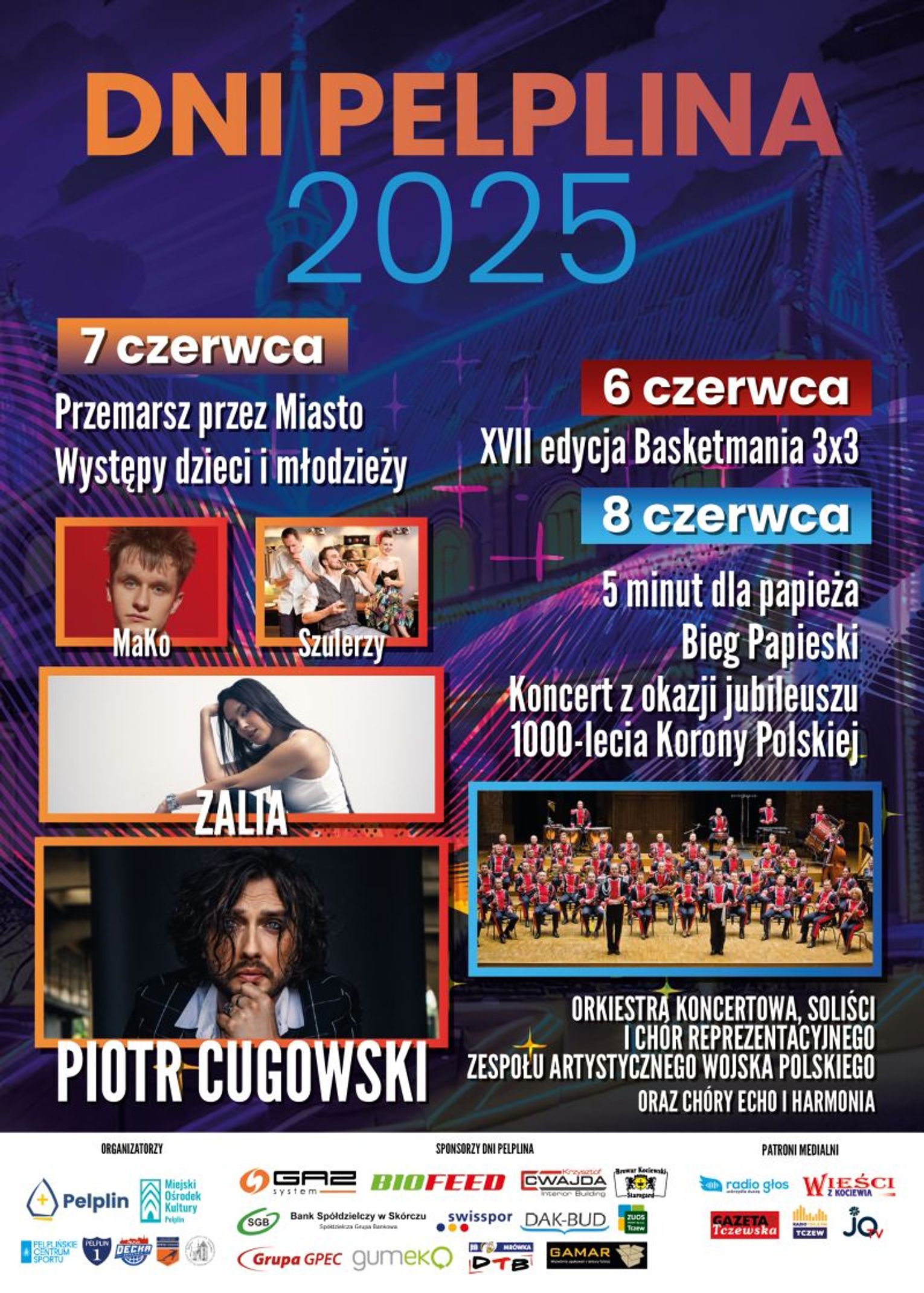 Corocznie na początku czerwca miasto Pelplin obchodzi swoje święto – Dni Pelplina. Wydarzenia to jest organizowane na pamiątkę wizyty św. Jana Pawła II w naszym mieście. Na uczestników wydarzenia czekają takie atrakcje jak: barwny korowód mieszkańców, występy znanych gwiazd polskiej sceny muzycznej, zawody sportowe, gry i zabawy dla dzieci oraz wiele innych. Serdecznie zapraszamy mieszkańców Gminy Pelplin oraz gości na tegoroczne święto miasta w dniach 6-8 czerwca 2025 r..