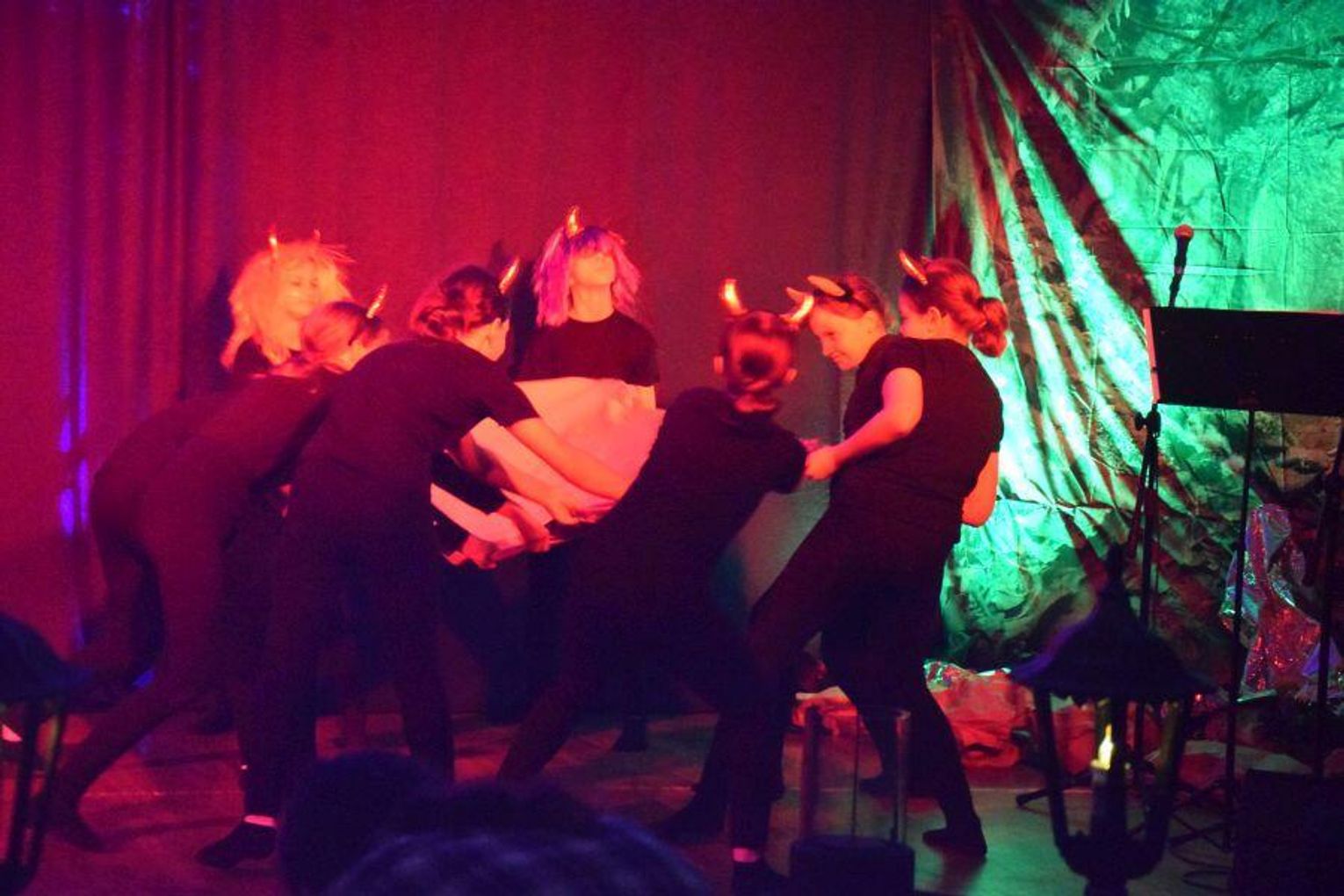 Piosenki śpiewali laureaci konkursów wokalnych: Zuzanna Gelińska, Jedrzej Markowicz, Aleksandra Kosendowska i Agata Rzeska pod opieką pani Karoliny Krauze. Nad kostiumami i przebiegiem technicznym spektaklu czuwała reżyser p.Małgorzata Abakumiec- Kussowska oraz przyjaciel naszej szkoły pan Sławomir Kussowski. Przedstawienie doczekało się owacji.