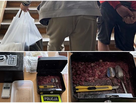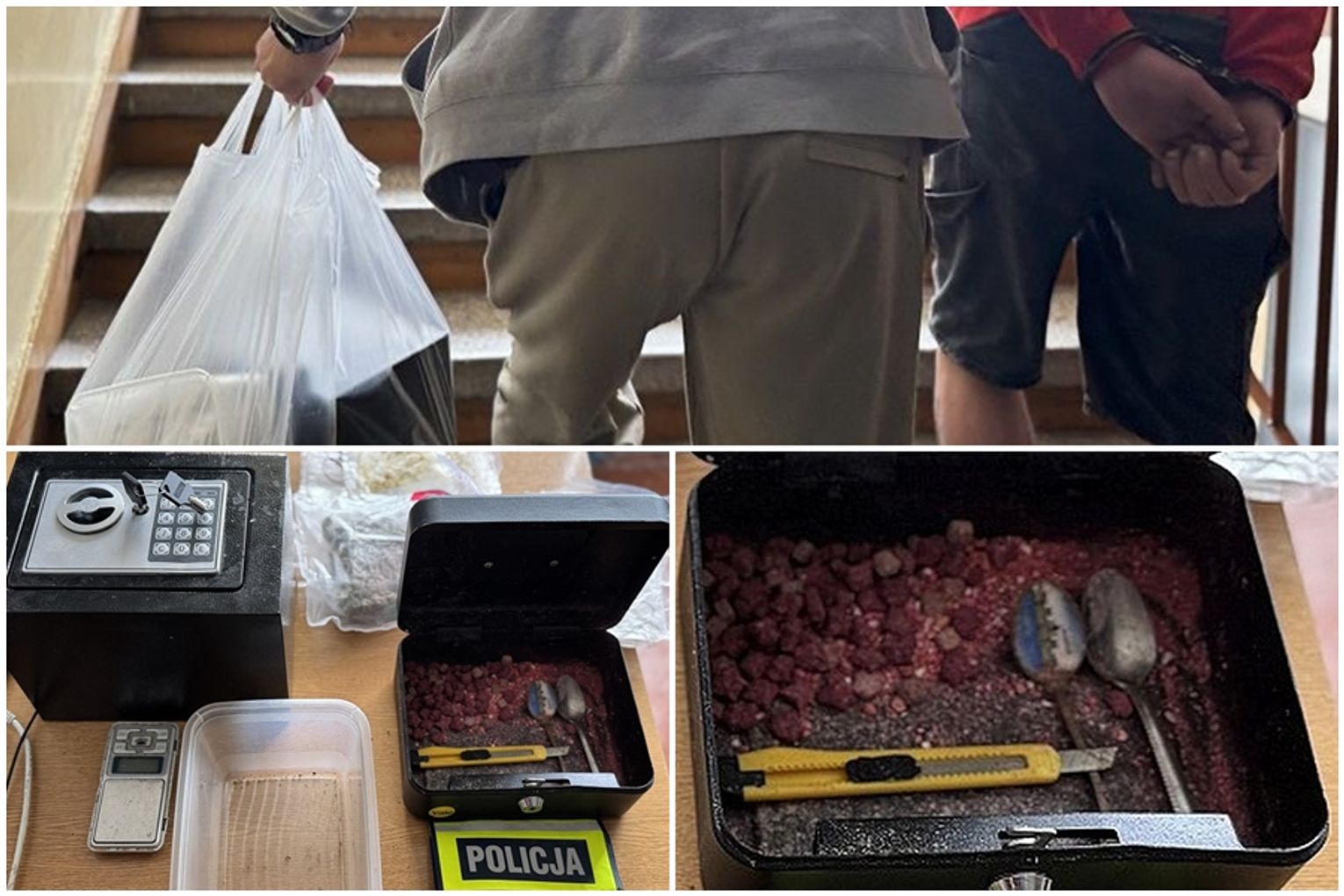 Tam znaleźli metalową kasetkę zamykaną na klucz z proszkiem koloru różowego oraz 11 woreczków z białym proszkiem. Dodatkowo mężczyzna w sejfie ukrywał kolejne narkotyki oraz wagę elektroniczną. Łącznie funkcjonariusze zabezpieczyli 165 gramów niedozwolonych substancji. 37-latek trafił do policyjnej celi, a następnego dnia został doprowadzony do prokuratury. Usłyszał zarzut posiadania znacznej ilości narkotyków. Prokurator zdecydował o środku zapobiegawczym – 37-latek musi stawiać się w jednostce Policji i wpłacić poręczenie majątkowe w wysokości 15 tys. zł.
