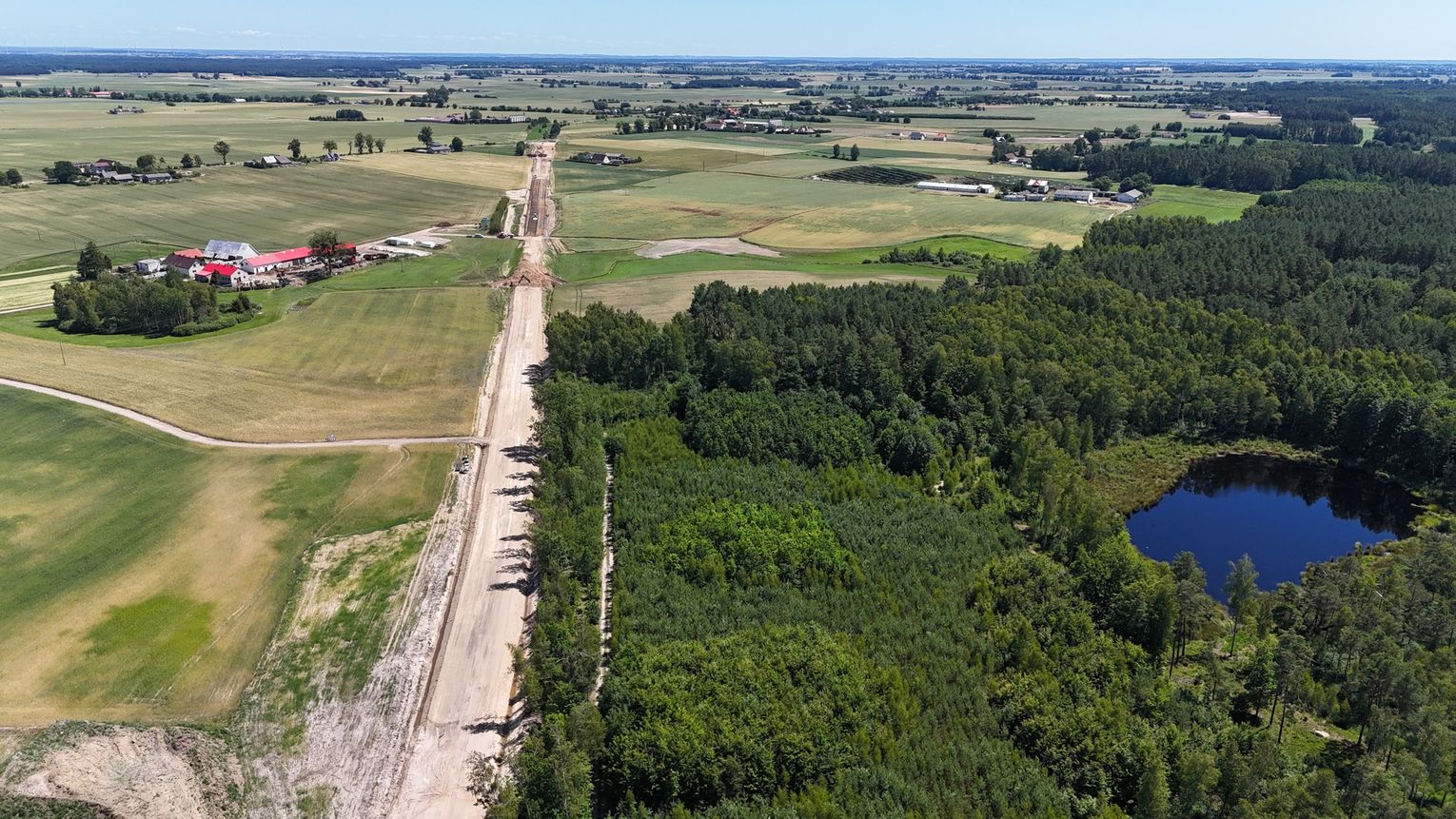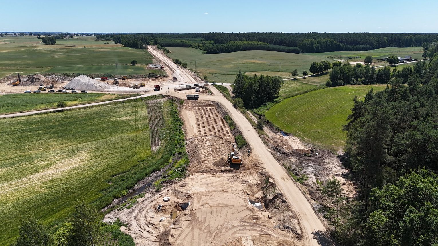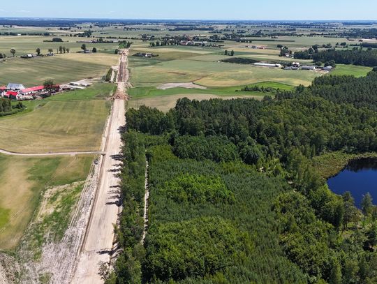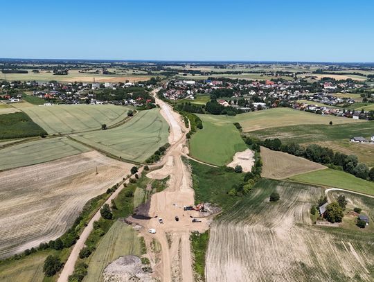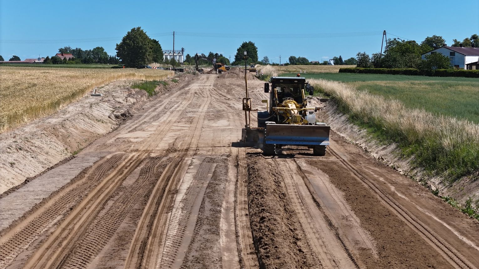 Wykonawca intensywnie pracuje na całym odcinku. Wykonywane są wykopy, nasypy oraz wzmacnianie podłoża, a na niektórych fragmentach rozpoczęto już budowę podbudowy pod warstwy bitumiczne. Trwa również budowa przepustów drogowych oraz kanalizacji deszczowej, która odwadnia nową trasę. Planowane zakończenie inwestycji to połowa 2026 roku.