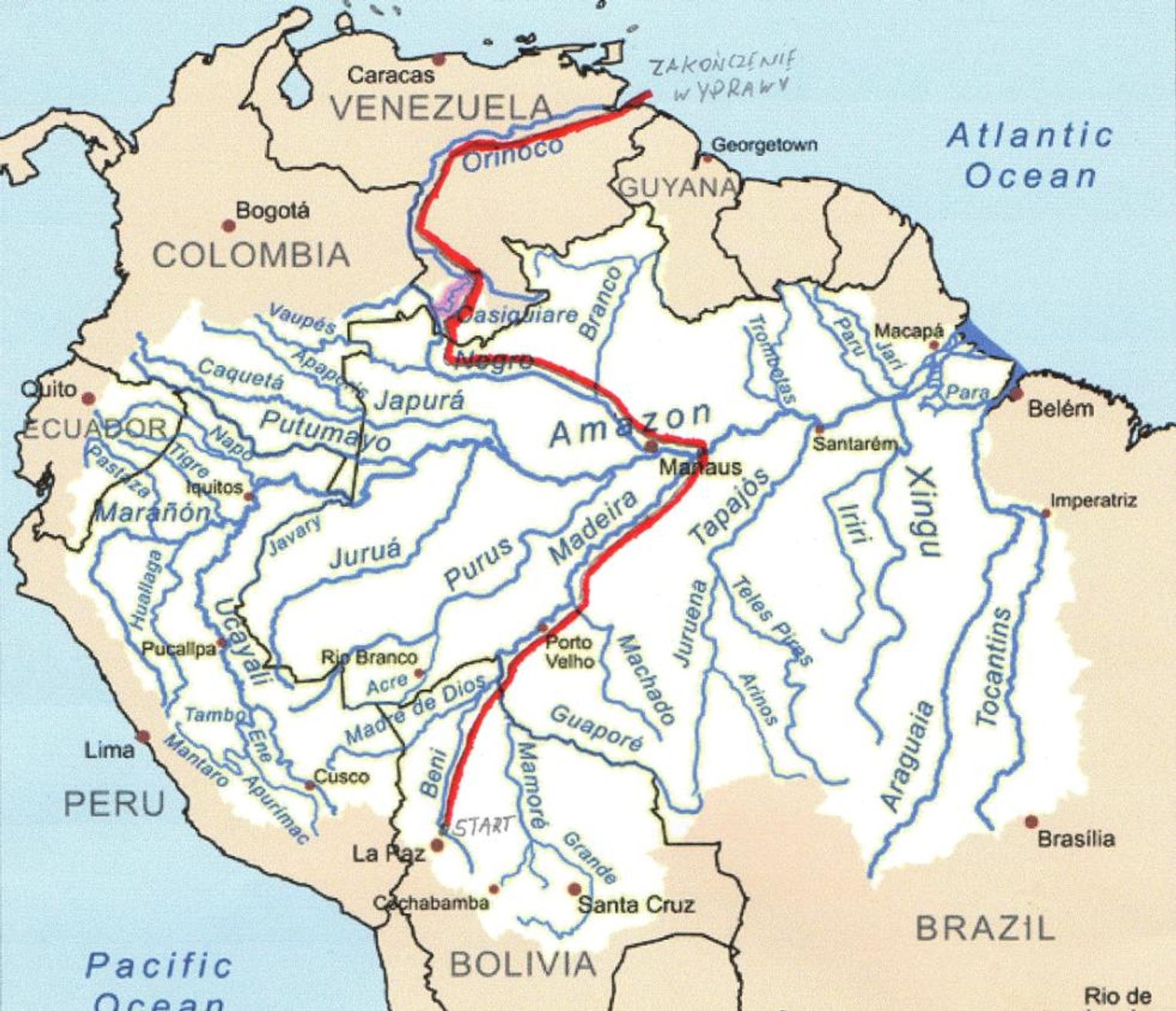 Nie należy do osób, które w podróży szczególnie cenią wygodę. Dla niego im trudniej tym lepiej. Był 2010 r., gdy zapakował do samolotu kajak i ruszył na podbój Amazonki. Cel: powtórzyć legendarny wyczyn Piotra Chmielińskiego, który spłynął najdłuższą rzeką świata od źródeł do ujścia. Przegrał ze zdrowiem. Może przeliczył swoje możliwości? Poddać się Amazonce, pokłonić rzece, której szerokość miejscami dochodzi do 100 km, to żaden wstyd. Sztuką jest wrócić i spróbować swoich sił jeszcze raz. Tym razem Kociewiak wyznacza sobie dość nietypowy cel. Zamierza samotnie przepłynąć z Boliwii poprzez rzekę Beni, Madeire, Amazonkę, Negro, Casiquiere, Orinoko do ujścia w Morzu Karaibskim.