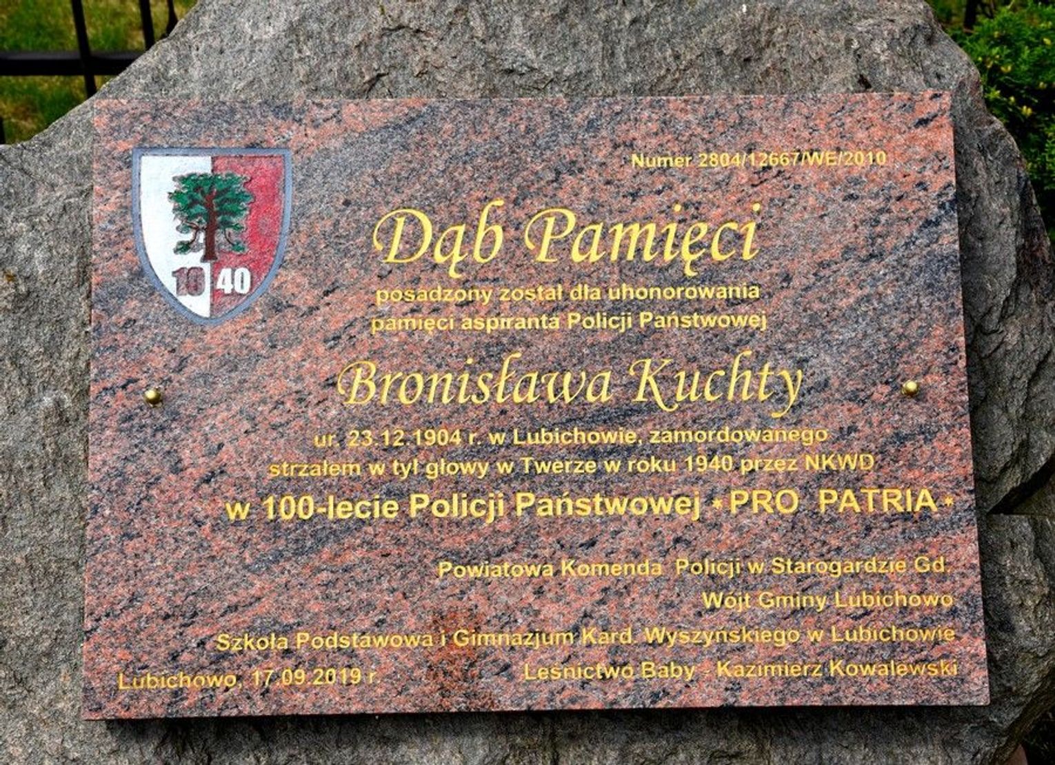 Przełożony starogardzkich mundurowych oddał również hołd i złożył kwiaty przy tablicy upamiętniającej asp. Bronisław Kuchtę – funkcjonariusza przedwojennej Policji Państwowej, który w 1939 roku został aresztowany przez NKWD i rozstrzelany w Twerze. Jego los podzieliło 200 innych policjantów z Pomorza.