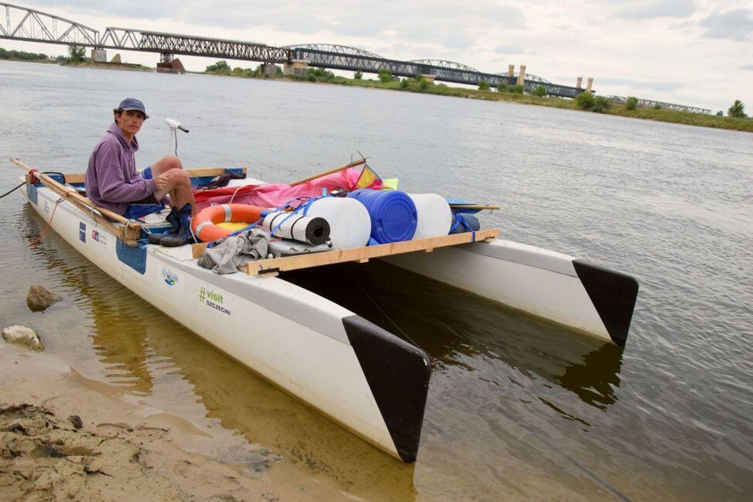 - Potem pojechaliśmy na testy, tego jak katamaran się sprawdza na wodzie. Wodowaliśmy go na Martwej Wiśle”. I tam sprawdzał się świetnie, ale teraz podczas rejsu widzę, że prąd Wisły sprawia nam problemy – stwierdził Antoni Smagoń. - Mamy namiot. Damy radę!