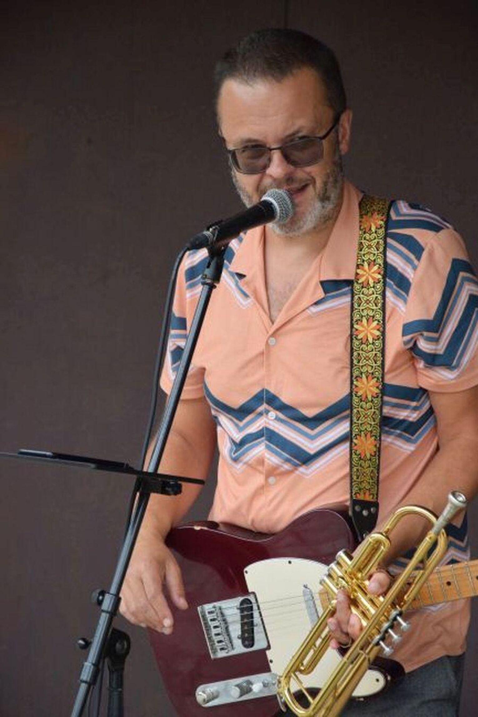 - Repertuar granych utworów mam dość szeroki i zwykle dopasowuję go do miejsca, które odwiedzam – stwierdził pan Piotr. - Dzisiaj uznałem, że najbardziej będzie pasować muzyka swingowo – bluesowa. Chodziło o nastrój luźniejszy... Granie w taki sposób, by nie skupiać całej uwagi na sobie.