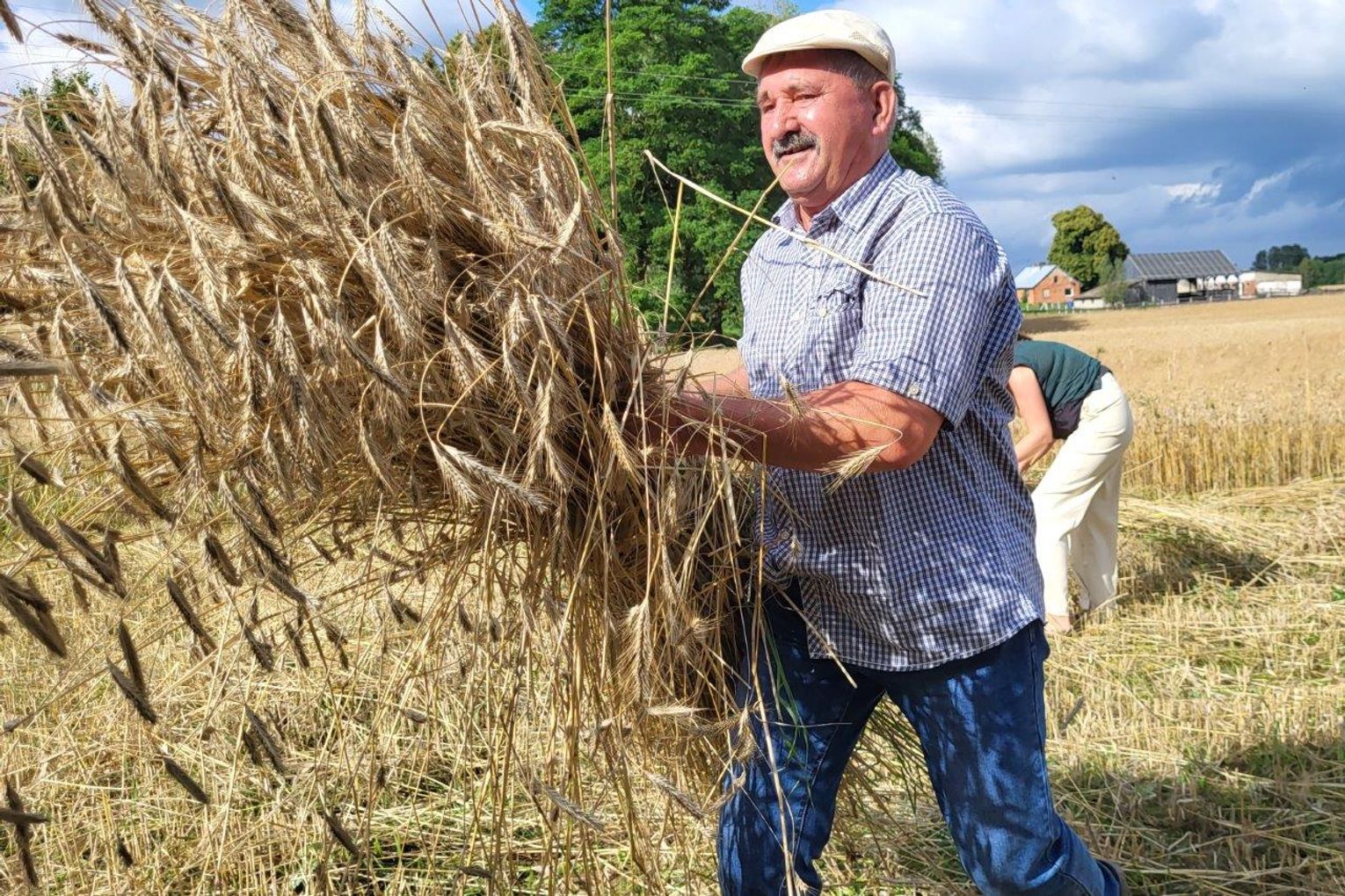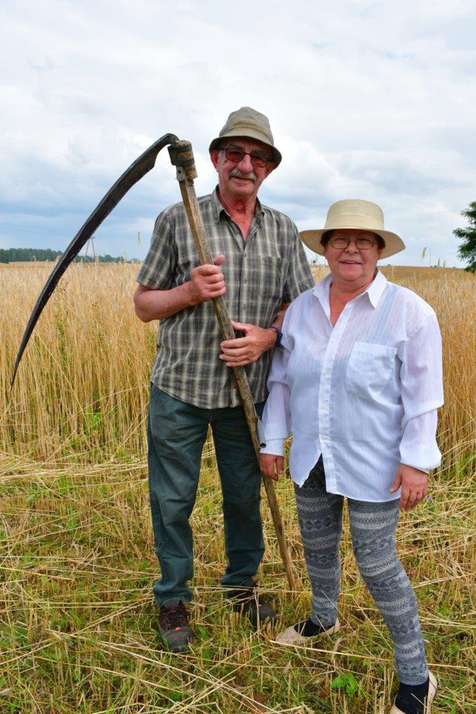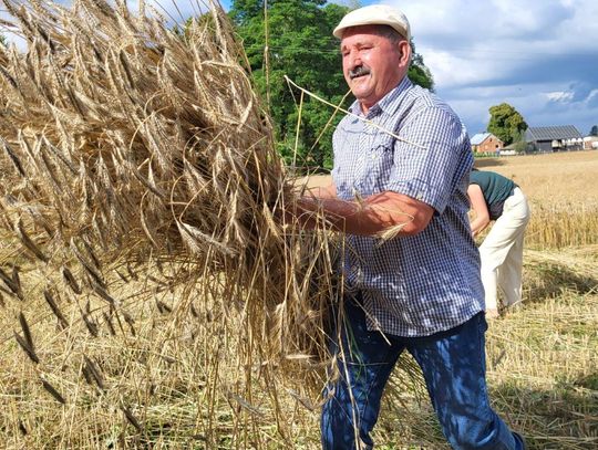 Żniwa tradycyjnie rozpoczęli gospodarze. Ścięcie pierwszych kłosów to bowiem ich przywilej i powinność. Pierwszy za sierp, a potem kosę złapał więc Andrzej Gdaniec. Nie kryjąc wzruszenia i radości.