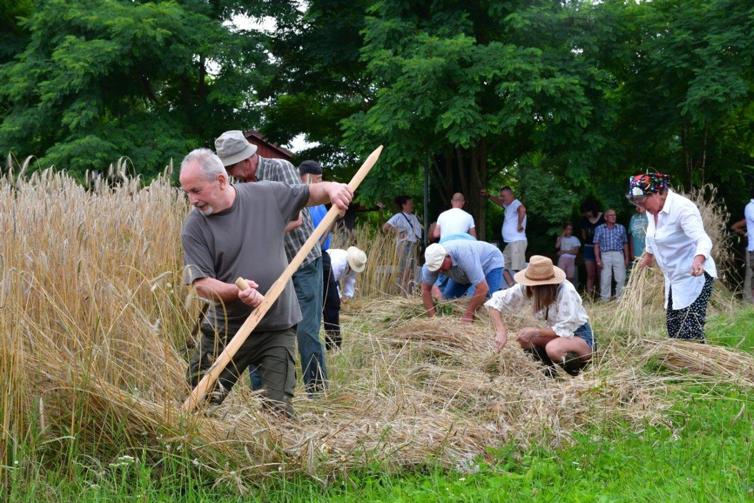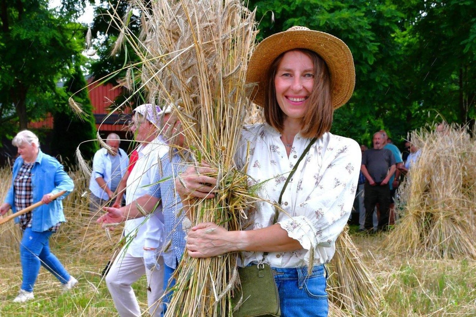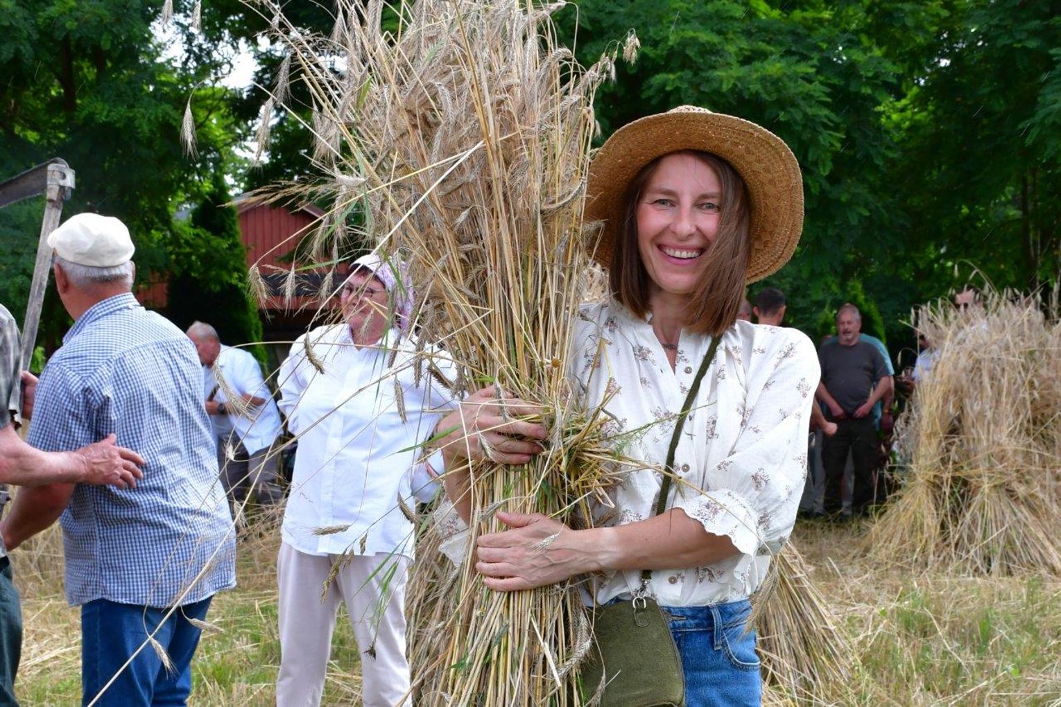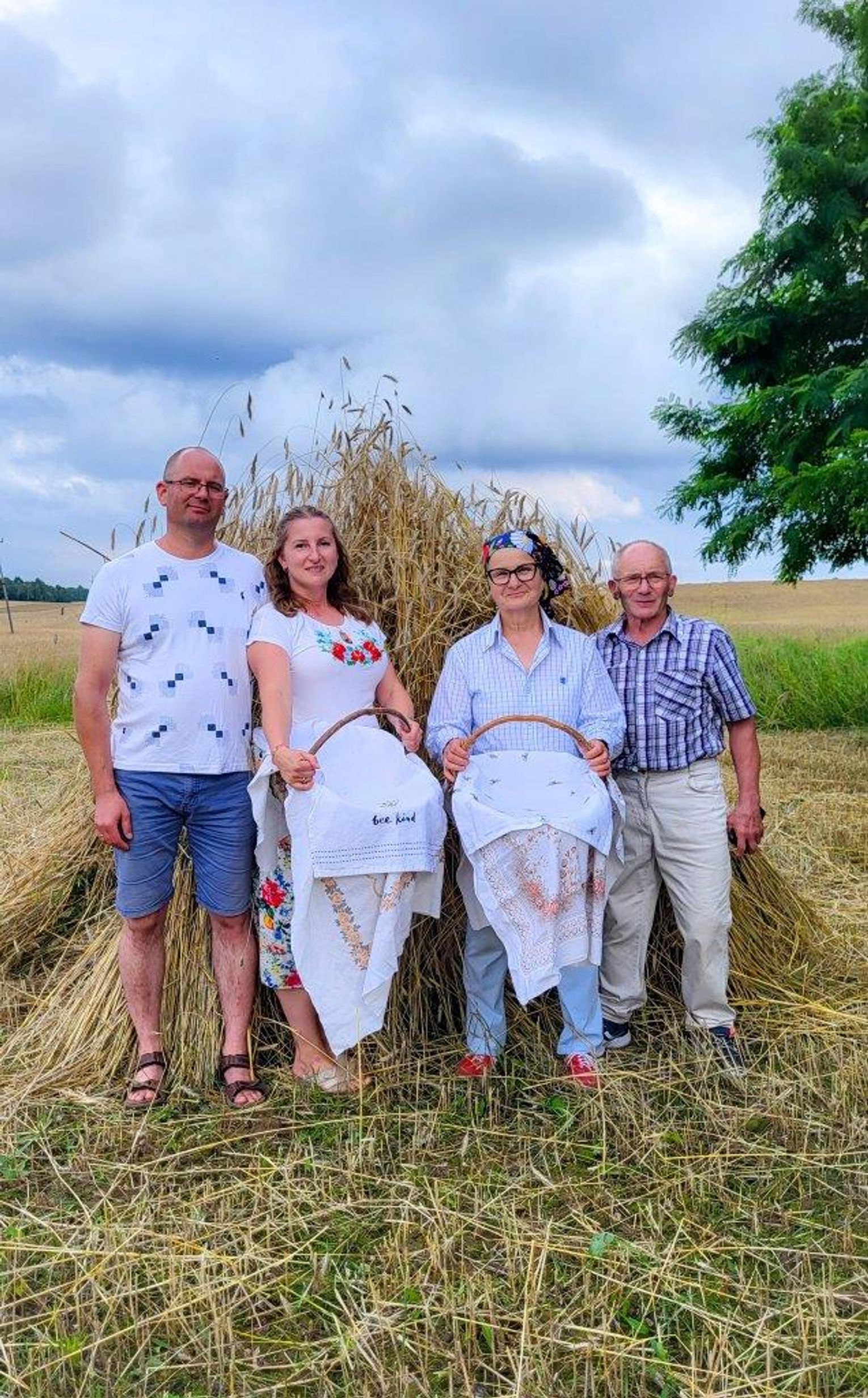 A potem wszyscy ruszyli do żniw! Poszły w ruch kosy, a na tomaszewskich polach szybko pojawiały się kolejne sztygi. Było pracowicie, swojsko i bardzo wesoło. W spotkaniu wzięły udział całe, wielopokoleniowe rodziny. Starsi uczyli młodych, a wspólnej pracy towarzyszyły wspomnienia i opowieści z dzieciństwa, ze żniw u babci czy w rodzinnym gospodarstwie. Jak podkreślali wszyscy, tomaszewskie żniwa to podróż w czasie. I serdeczne spotkanie w pięknym miejscu.