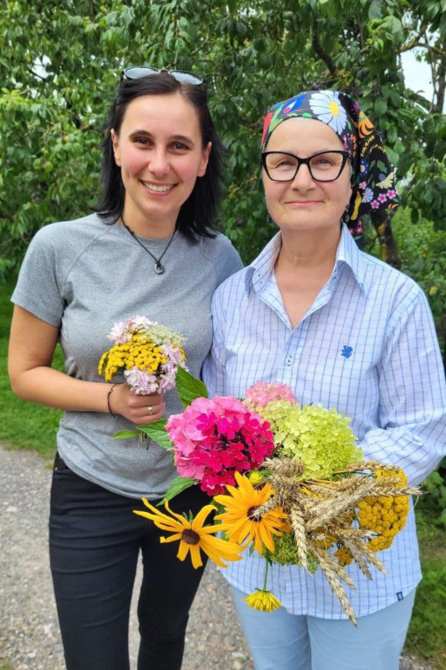 A po pracy – poczęstunek żniwiarza. Gospodarze przygotowali swojski stół z prawdziwymi specjałami. Domowy chleb, drożdżówka, pajda z „czarną”, kawa zbożowa, kompot z owoców z sadu, domowy ser, swojskie masło. A wszystko – po prostu pycha i przepięknie zaserwowane! Nic więc dziwnego, że nikomu nie spieszyło się stąd wyjeżdżać…