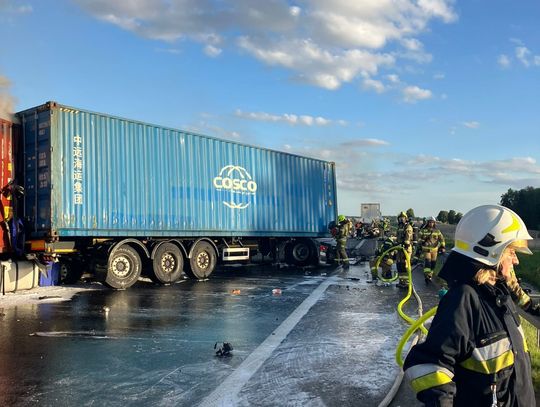 - W wyniku wypadku droga została całkowicie zablokowana - informuje mł. Kpt. Konrad Majewski, z-ca rzecznika prasowego KP PSP w Tczewi. - Łącznie 4 pojazdy: 3 ciężarowe i bus. Dwa samochody ciężarowe uległy pożarowi (płon) Zadysponowaliśmy łączni 10 zastępów jednostek straży pożarnej. Na miejscu pracuje obecnie kilka ZRM. Trwa ustalanie ilości poszkodowanych.