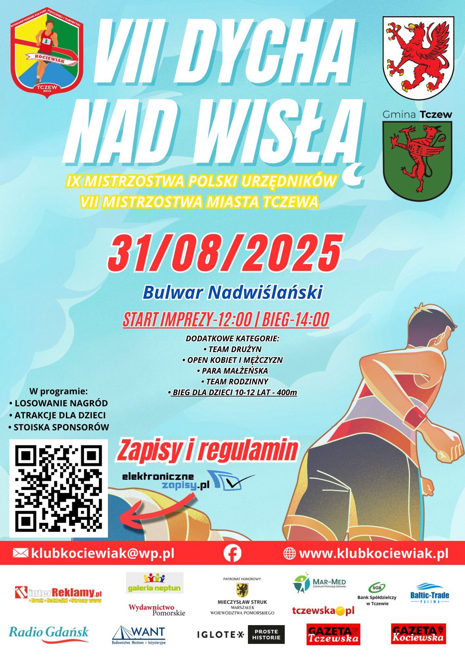 „VII Dycha Nad Wisłą” to wyjątkowa impreza biegowa na Bulwarze Nadwiślańskim w Tczewie, bowiem w tym roku będą to także: