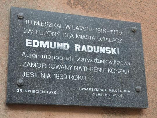 - Należy pamiętać i krzewić pamięć o lokalnych tczewskich działaczach – podkreśla Tomasz Jagielski, członek Zrzeszenia Kaszubsko - Pomorskiego Oddziału Kociewskiego w Tczewie. - Edmund Raduński to jedna z ofiar II wojny światowej, której 86. rocznicę będziemy niedługo obchodzić. Spacerując uliczkami miasta Sambora warto zajrzeć na ulicę Kościuszki i przywołać pamięć Edmunda Raduńskiego.
