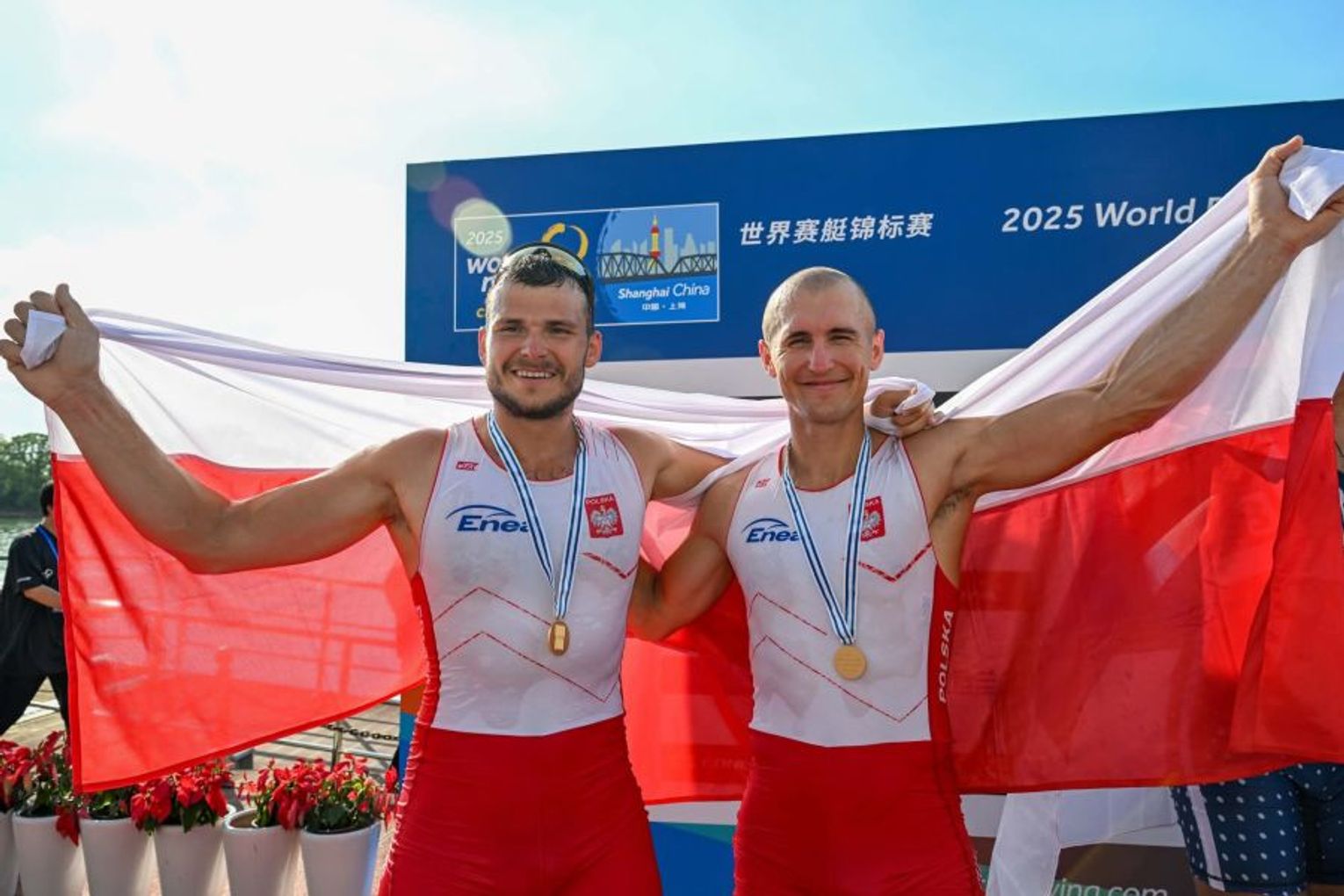 Polska dwójka podwójna w składzie Mateusz Biskup (RTW Lotto Bydgostia) i Mirosław Ziętarski (AZS UMK Toruń) zdobyła złoty medal mistrzostw świata w Szanghaju, prowadząc niemal od samego startu. Po 1000 metrach mieli już 1,5 sekundy przewagi nad Irlandczykami, a finiszowali z wyraźną przewagą nad pozostałymi osadami.