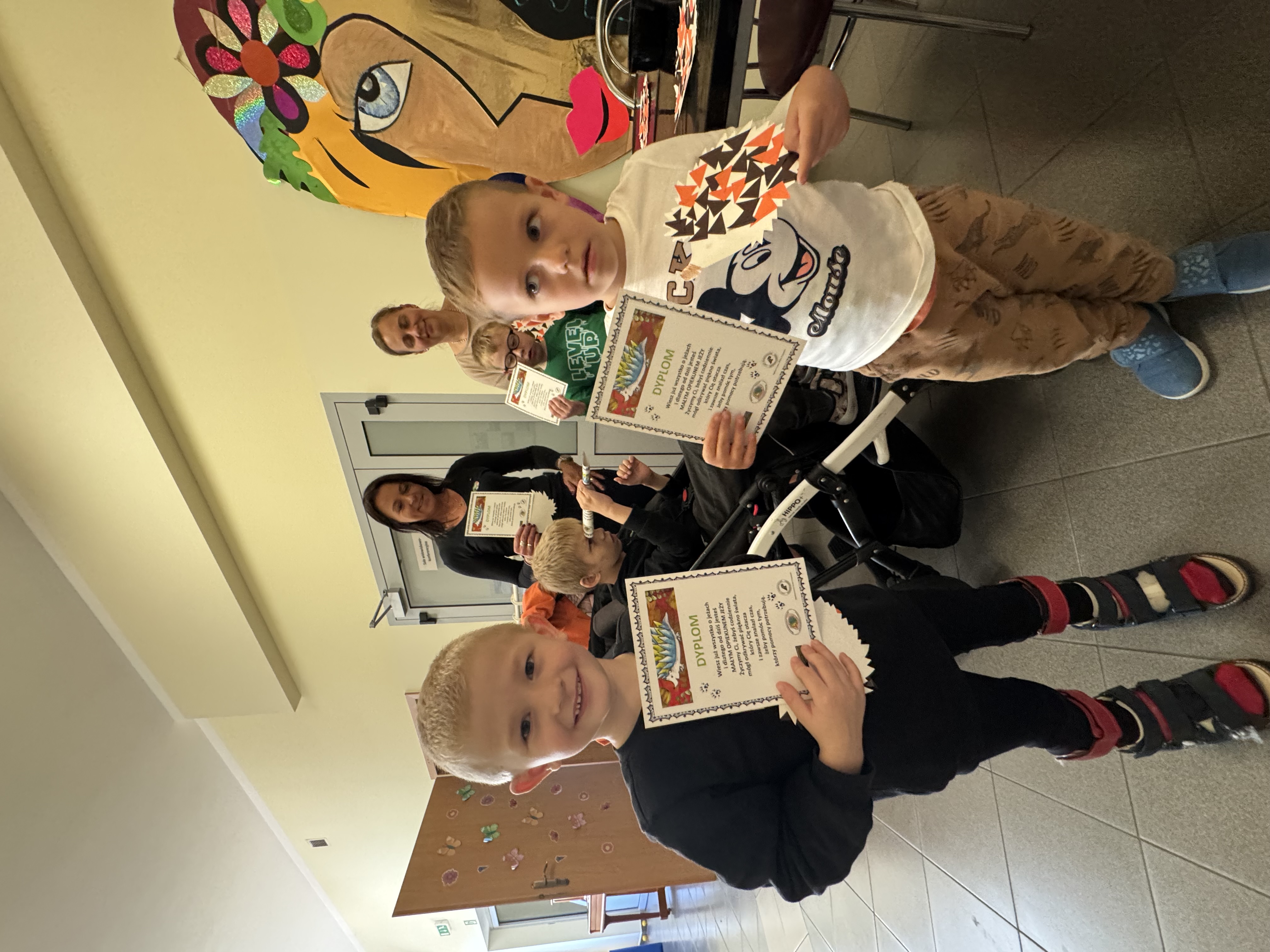 Każde dziecko oraz uczestnik wydarzenia otrzymał naklejkę-odznakę „Przyjaciel jeży”, co spotkało się z ogromną radością. Po części merytorycznej uczniowie wzięli udział w kreatywnych zajęciach, w trakcie których czekały na nich kolorowanki, łamigłówki i zabawy tematyczne związane z ochroną przyrody.