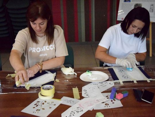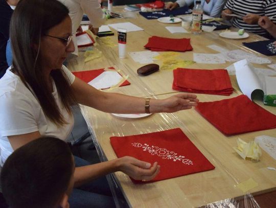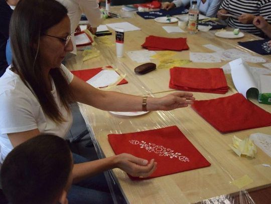 Dzięki inicjatywie Katarzyny Magierowskiej specjalizującej się w hafcie powiślańskim, grupa zainteresowanych (w większości” kobiety i dwóch mężczyzn) mogła uczestniczyć w warsztatach wspomnianego haftu. Efektem były pięknie zdobione poduszki z odbijanym na nich wzorze haftu.