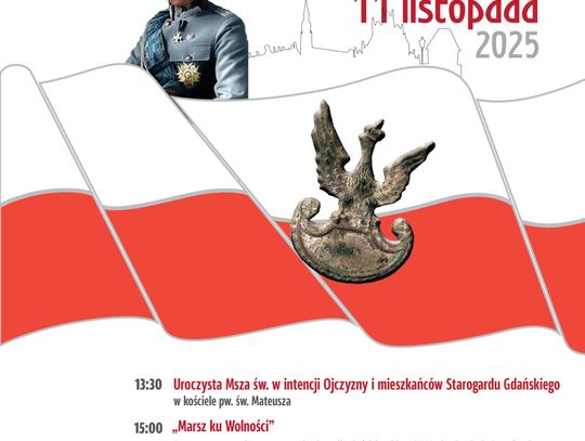 Narodowe Święto Niepodległości jest jednym z najważniejszych świąt państwowych w Polsce. 11 listopada 1918 roku, po 123 latach niewoli pod zaborami Rosji, Prus i Austrii, nasz kraj odzyskał wolność. Jak co roku władze miasta zapraszają wszystkich mieszkańców Starogardu do wspólnego świętowania.