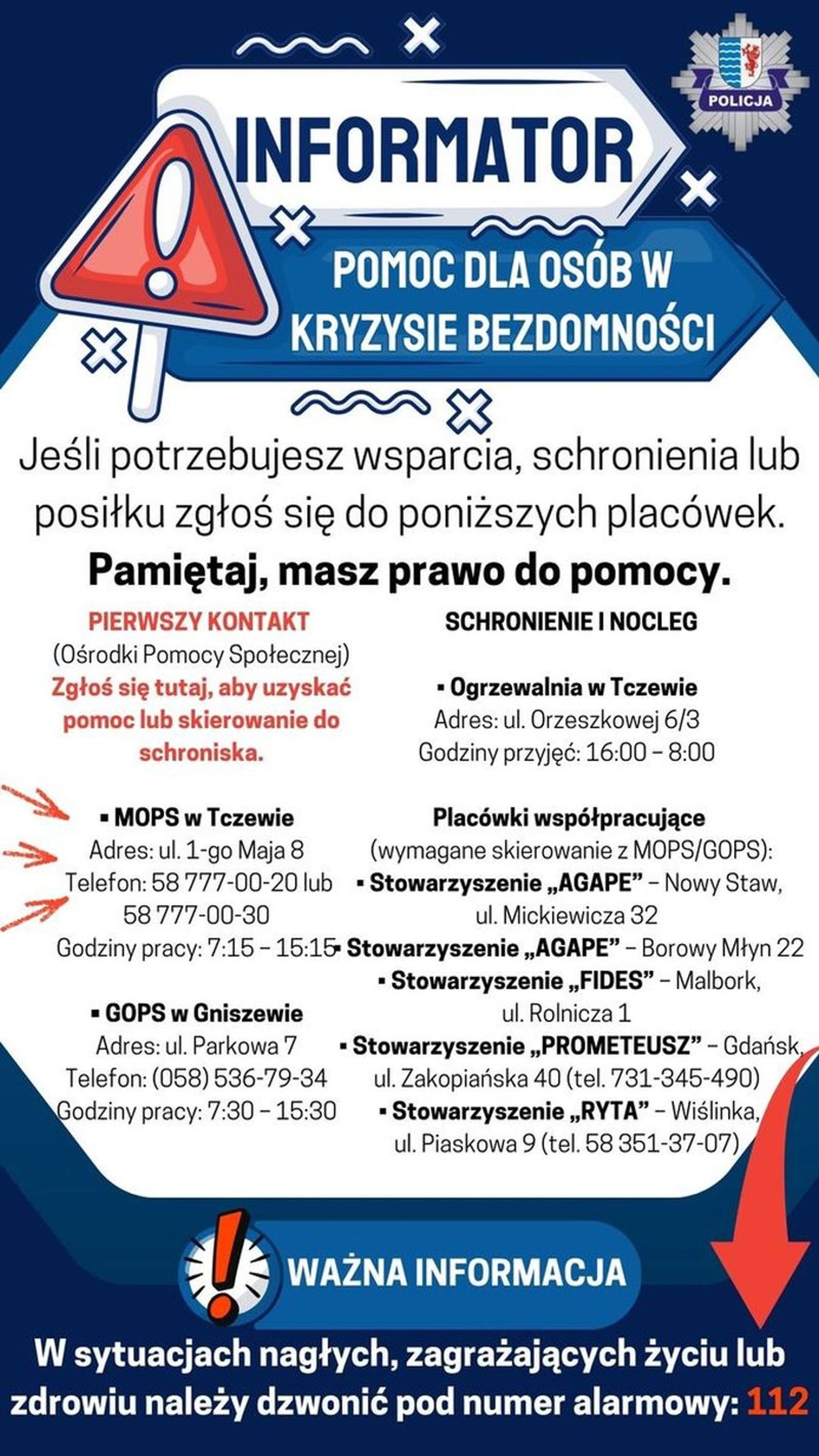 Osoby w kryzysie bezdomności nie są dla służb anonimowe. Policjanci i pracownicy GOPS znają miejsca, w których one przebywają, utrzymują z nimi stały kontakt, pytają o ich potrzeby i sprawdzają, jak mogą im pomóc. Podczas kontroli przekazywano ulotki informacyjne z adresami i numerami telefonów do miejsc, gdzie można otrzymać pomoc, schronienie i ciepły posiłek. W trakcie działań funkcjonariusze oraz przedstawiciel pomocy społecznej przekazali osobom przebywającym w prowizorycznych schronieniach przedmioty pierwszej potrzeby. Były to między innymi koce termiczne oraz butle z gazem, które mogą pomóc ogrzać się w niskich temperaturach. Regularne kontrole i bezpośredni kontakt z osobami w kryzysie bezdomności są szczególnie ważne w czasie silnych mrozów. Niskie temperatury mogą w bardzo krótkim czasie doprowadzić do wychłodzenia organizmu, a nawet zagrożenia życia.