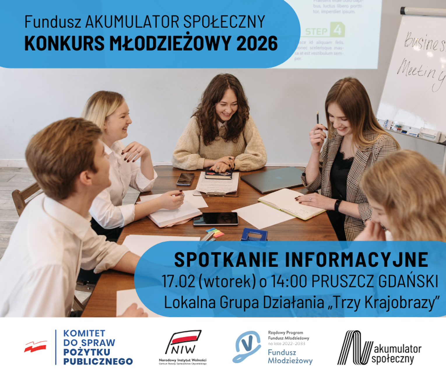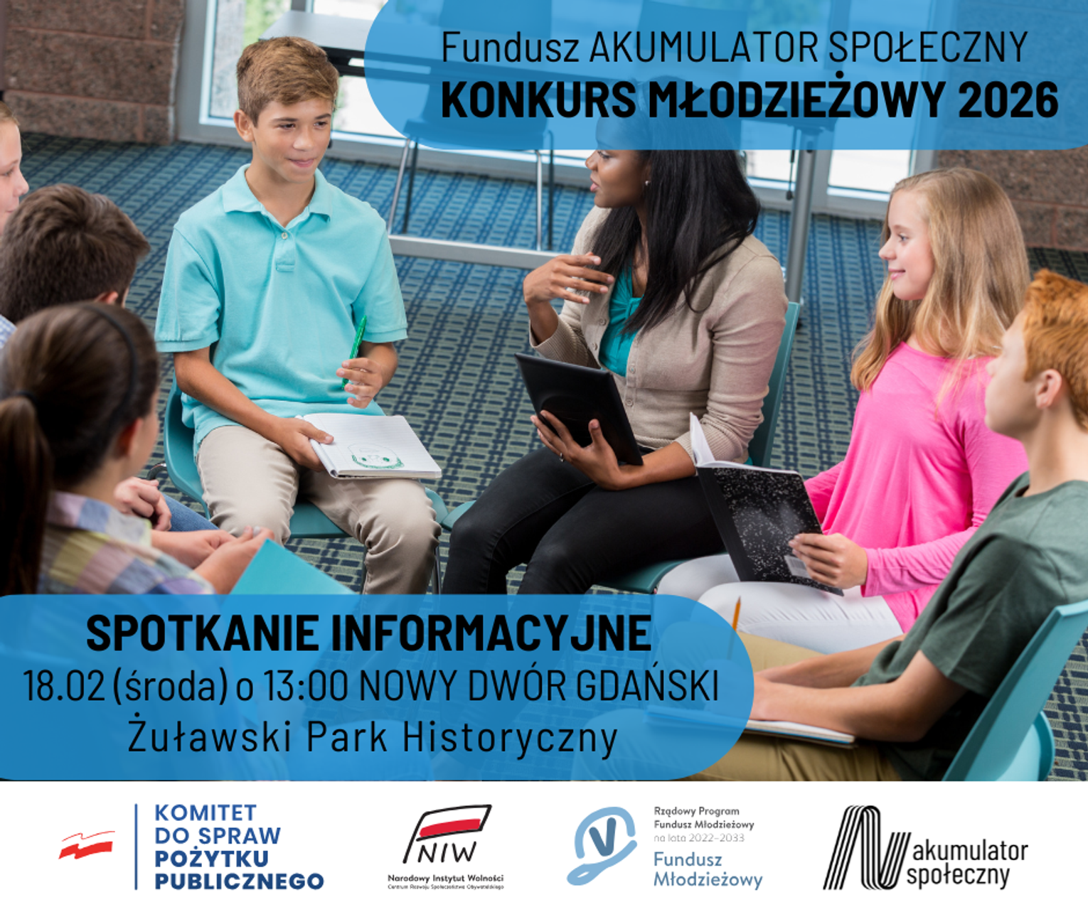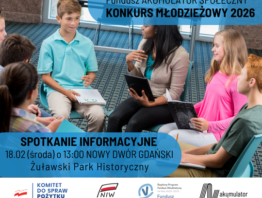 Szczegóły, w tym Regulamin konkursu młodzieżowego znajdują się na stronie Funduszu: www.akumulatorspoleczny.pl. Bieżące informacje są także na profilu FB: facebook.com/akumulatorspoleczny i IG: instagram.com/fundusz_akumulator_spoleczny/.
