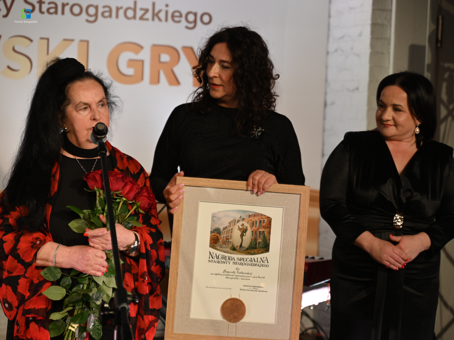 Kapituła przyznała Nagrody Starosty Powiatu Starogardzkiego „Kociewski Gryf” w dziedzinie kultury, wyróżniając twórców oraz najważniejsze wydarzenia kulturalne. Twórcą Roku 2025 został Wojciech Gdaniec - wieloletni nauczyciel Państwowej Szkoły Muzycznej w Starogardzie Gdańskim, wychowawca pokoleń młodych muzyków i animator życia kulturalnego. Prowadził m.in. Orkiestrę Kameralną, New Star Jazz Band, Orkiestrę Pro Simfonika, jest dyrygentem Singers Novi oraz chóru Szpaki ze Skórcza. Nagrodę Specjalną Starosty Starogardzkiego otrzymała Bogumiła Fiałkowska - regionalistka i nauczycielka, która od 36 lat prowadzi Zespół Pieśni i Tańca „Lubichowskie Kociewiaki”, promując kulturę i tradycję Kociewia.
