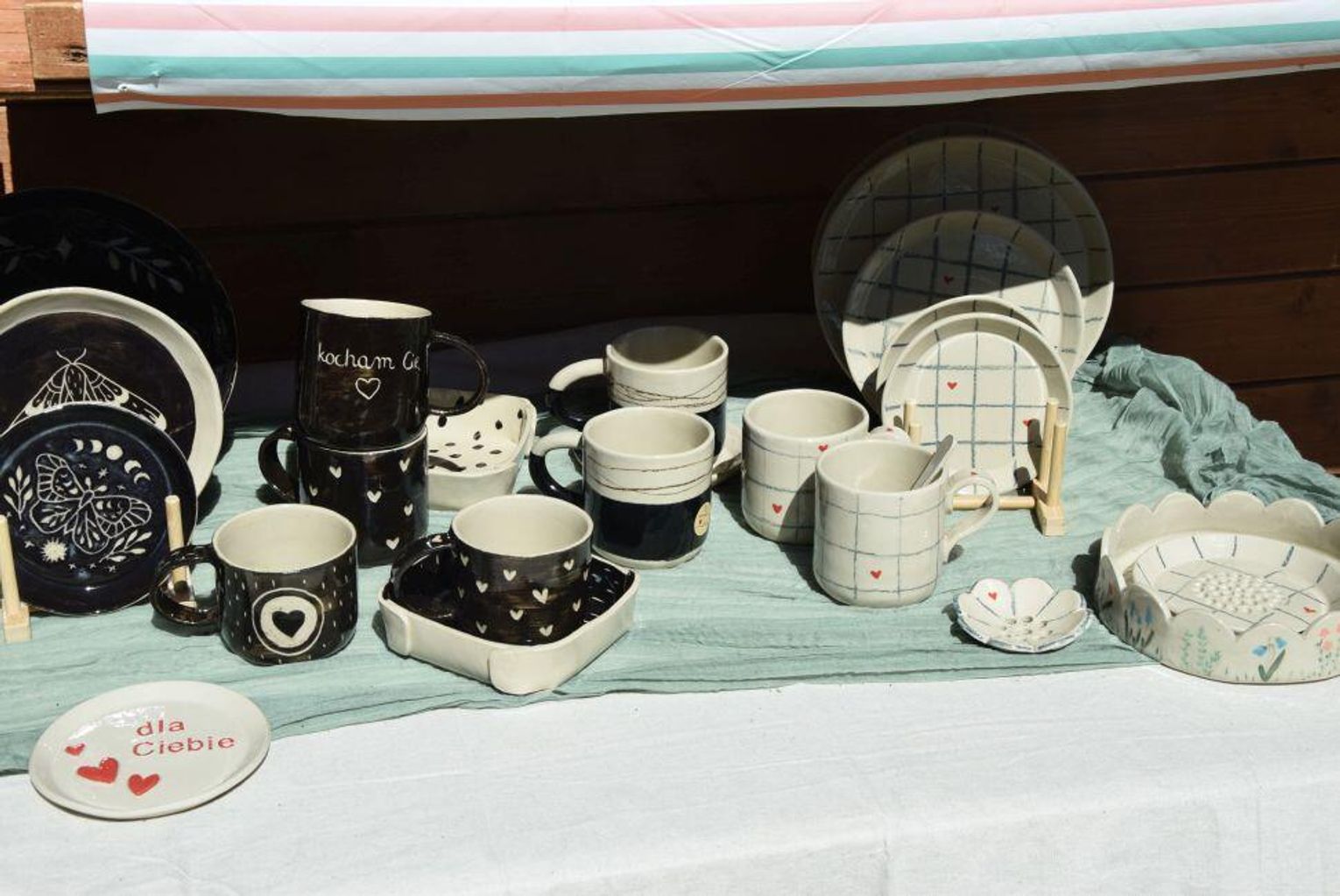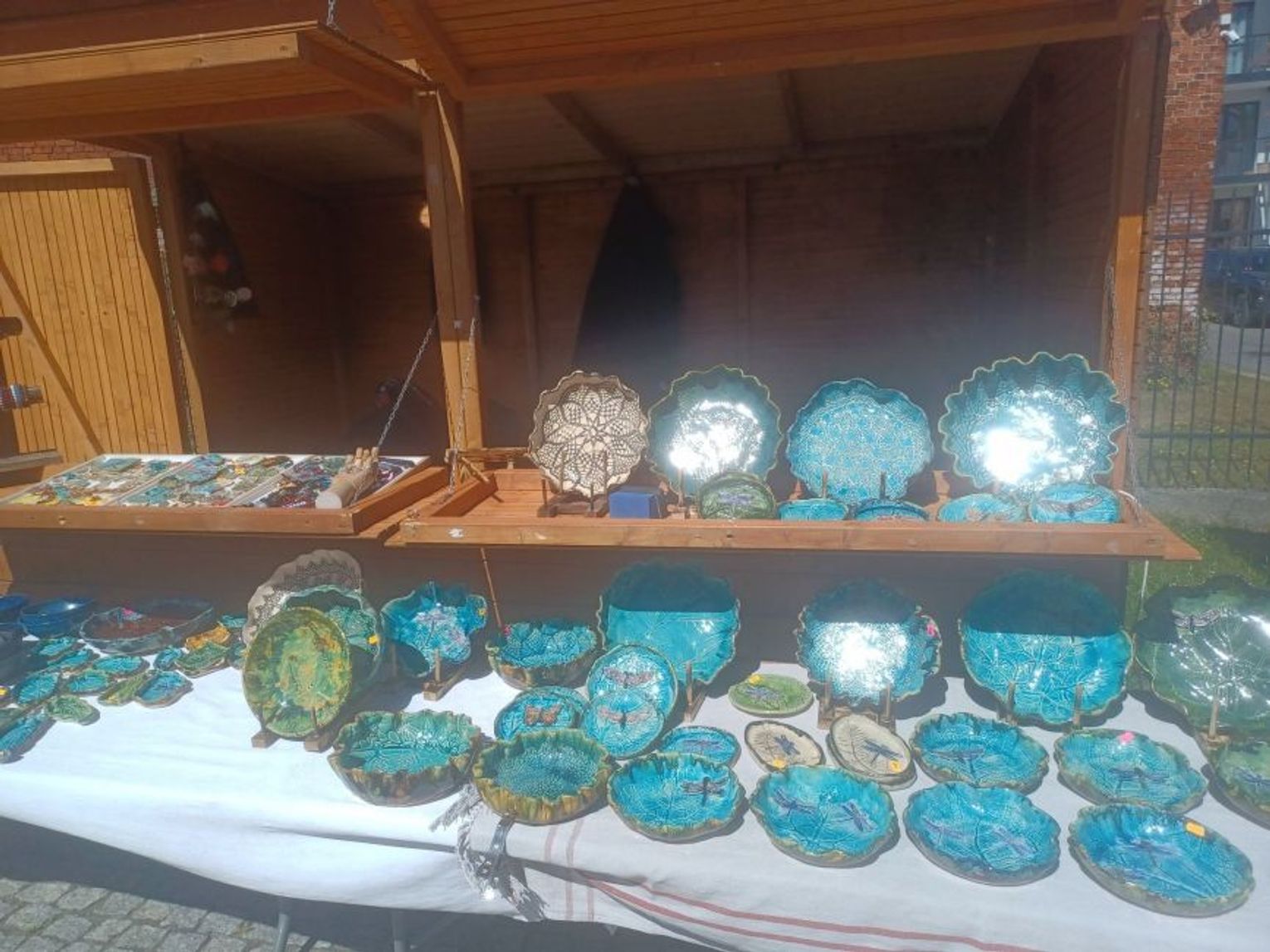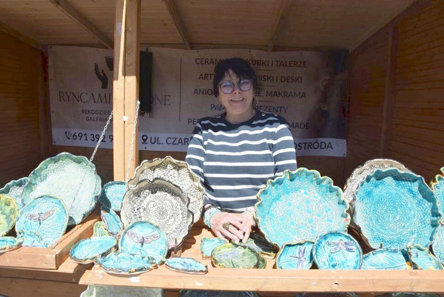 Kram „Sznurek, papier, nożyce” prezentował wyroby na szydełku i haftowane torby, makramę. Nie brakowało stoisk z ceramiką wykonywaną różnymi technikami m.in. Fundacji Moc oraz firmy „Ryncami Robione” pani Ani z Ostródy. Pani Alicja z Gdańska wystawiła z kolei biżuterię i rzeźby z glinki polimerowej.