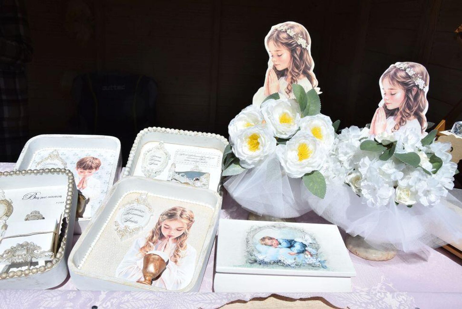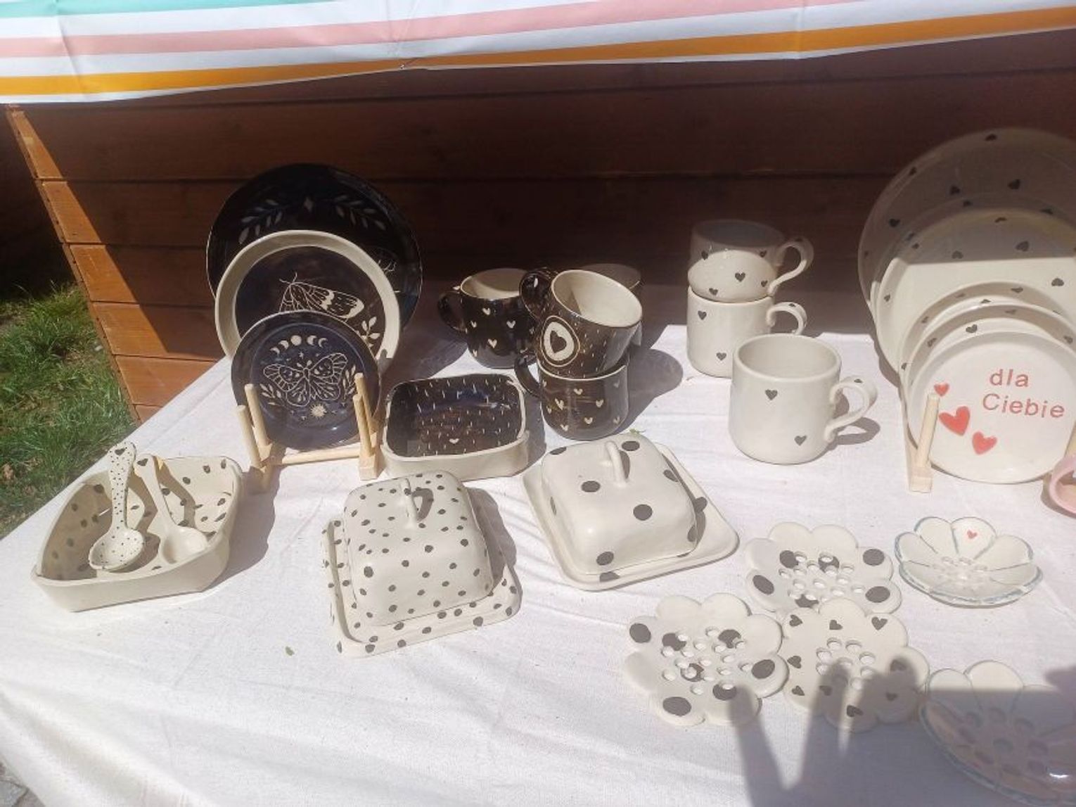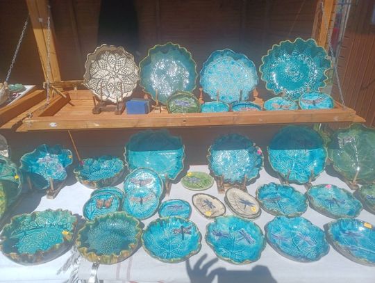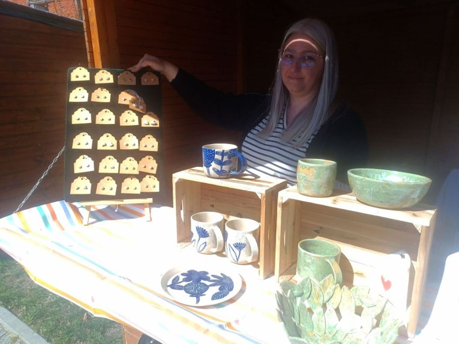 Kram „Sznurek, papier, nożyce” prezentował wyroby na szydełku i haftowane torby, makramę. Nie brakowało stoisk z ceramiką wykonywaną różnymi technikami m.in. Fundacji Moc oraz firmy „Ryncami Robione” pani Ani z Ostródy. Pani Alicja z Gdańska wystawiła z kolei biżuterię i rzeźby z glinki polimerowej.