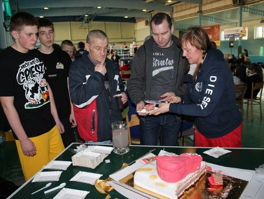 Dla wszystkich uczestników zawodów Barbecue przygotowało ciepły posiłek. Największą niespodzianką był ufundowany przez Waldemara Wąsa wielki tort, który zdobiły bokserskie rękawice. Tortem firmy „WW” dzieliła pani Anna. Około 200 porcji rozeszło się w godzinę. Smakował przednio. Dziękujemy Waldku!