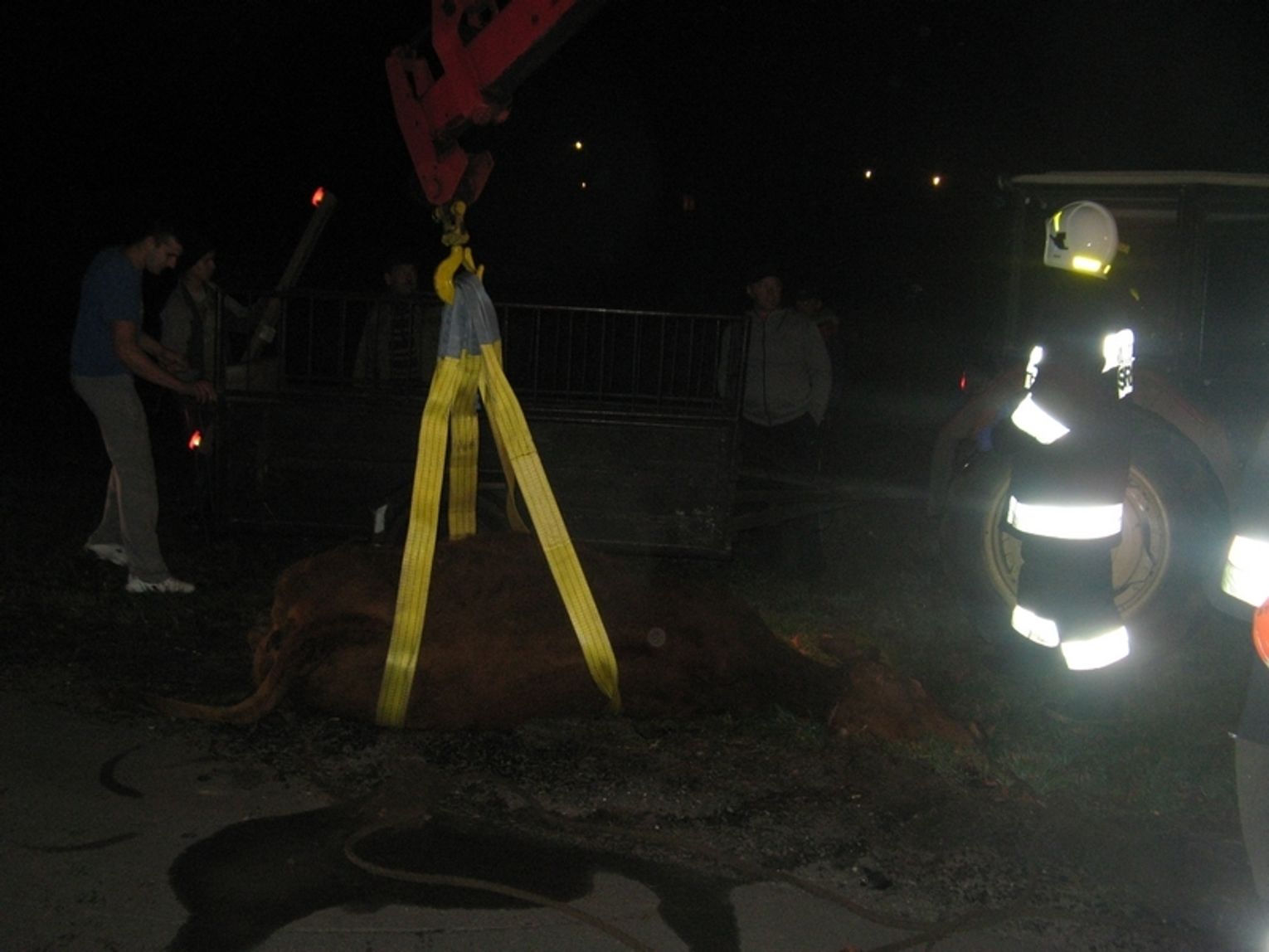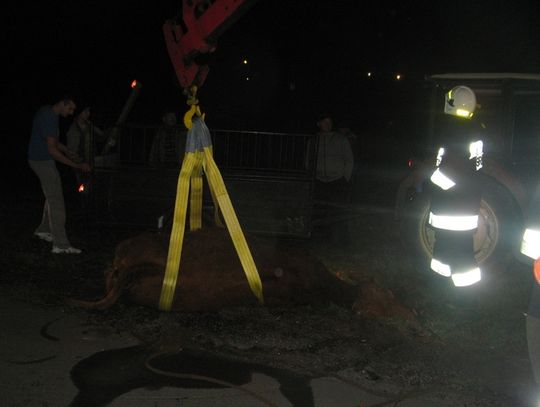 - Na miejscu zastano samochód ciężarowy z naczepą na poboczu który potrącił krowę - informuje OSP Zblewo na swojej stronie. - Zabezpieczono teren działań, uprzątnięto jezdnię z szkieł i plastików. Przy pomocy żurawia z SCRt Bronto krowe usunięto z pasa jezdni i przekazano właścicielowi. Następnie przy pomocy wyciągarki hydraulicznej wyciągnięto samochód ciężarowy z powrotem na jezdnie. Działania zakończone zastępy wróciły do jednostek.
