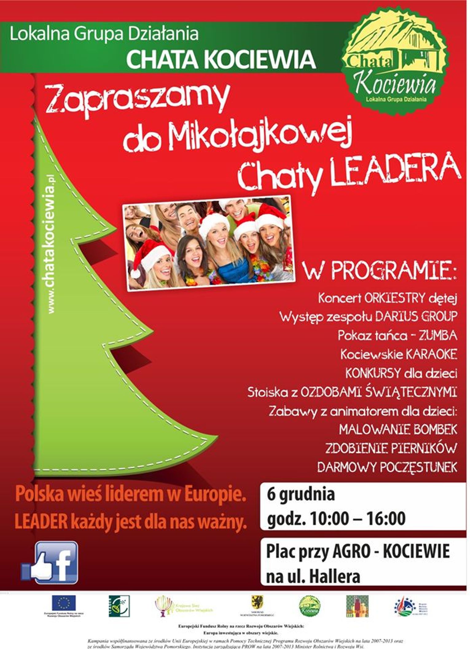 Lokalna Grupa Działania "Chata Kociewia" serdecznie zaprasza do Mikołajkowej Chaty w ramach kampanii promocyjnej LEADER- KAŻDY JEST DLA NAS WAŻNY.