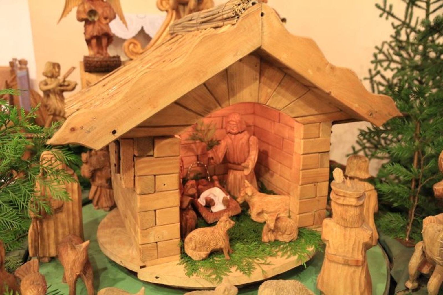 Drewniana szopka bożonarodzeniowa w parafii Najświętszego Serca Pana Jezusa