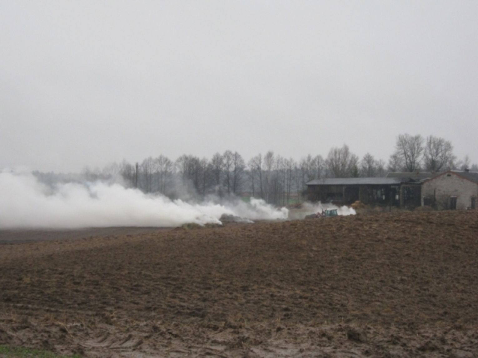 W oborze znajdowały się baloty słomy, które strażacy musieli usunąć, aby łatwiej można było dogasić pożar. Budynki nie uległy całkowitemu spaleniu jednak w niedługim czasie wybuchł w tym miejscu drugi pożar.
