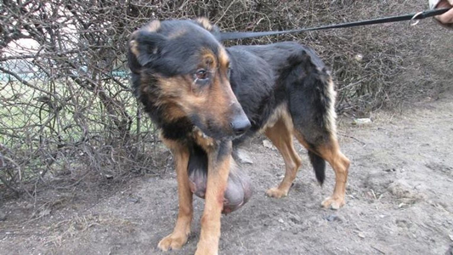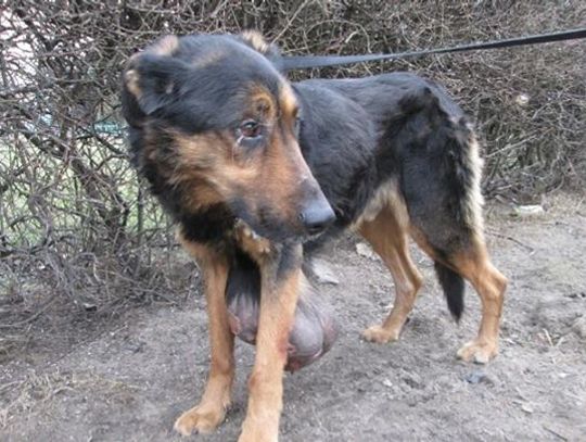 Z okolic klatki piersiowej psa Hektora wyrastał ogromny guz. - Nabrał on takich rozmiarów, że Hektor z trudem mógł się poruszać – przyznają animalsi. - Guz chybotał się na prawo i lewo utrudniając mu chodzenie. Taki stan psa na pewno nie trwał krótko. Miesiącami, a może nawet latami nowotwór rósł w siłę. Sam pies przyzwyczaił się do ciężaru z jakim przyszło mu żyć. Jego właściciele zbagatelizowali sprawę i pozwolili na mękę zwierzaka. Początkowo guzek był mały i łatwiej można byłoby go usunąć. Pozostawiony sam sobie zaczął się rozwijać.