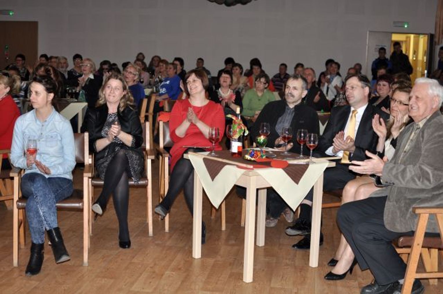 - Celem koncertu, oprócz dobrej zabawy było nawiązanie więzi i integracja ludzi w różnym wieku i z różnych grup społecznych - mówi Iwona Ciemińska, Kierownik ŚDS. - Poprzez wspólną prezentację przygotowanego programu: piosenek i wierszy nasi aktorzy przekazali licznie zgromadzonej publiczności pozytywne emocje i pokazali, że współpraca, wsparcie i wzajemna akceptacja są naprawdę możliwe. Podczas przedstawienia uczestnicy mogli usłyszeć piosenki stare i nowe, np.: "Parasolki", "Serce"," Ja uwielbiam ją" i "Baśkę" oraz wiersze Jonasza Kofty prezentowane przez Asię i Dawida, a także wysłuchać Zbyszka i jednego z terapeutów i zarazem scenarzystę przedstawienia- Jasia. Widzowie, siedzący przy pięknie udekorowanych stolikach brali aktywny udział w inscenizacji i gromkimi brawami dziękowali za każdą prezentację. Na zakończenie koncertu, po życzeniach złożonych przez Wójta Sławomira Janickiego każda z Pań obecna na sali otrzymała symboliczny kwiatek.