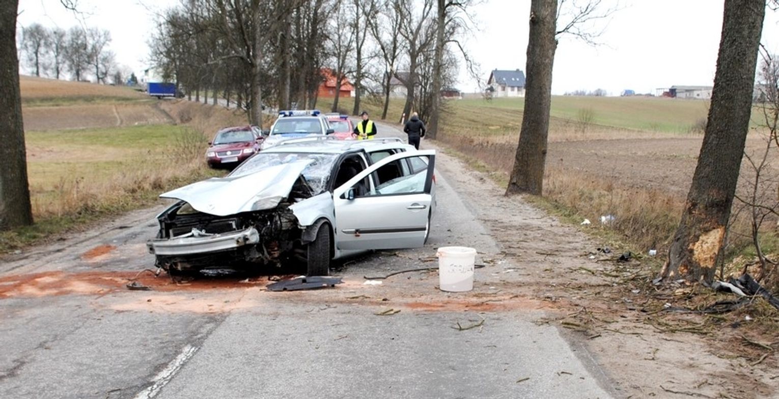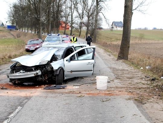 Jak ustalili pracujący na miejscu funkcjonariusze do wypadku doszło, gdy kierująca osobowym renault zjechała na prawe pobocze i uderzyła pojazdem w drzewo. Samochodem tym podróżowały 3 osoby.