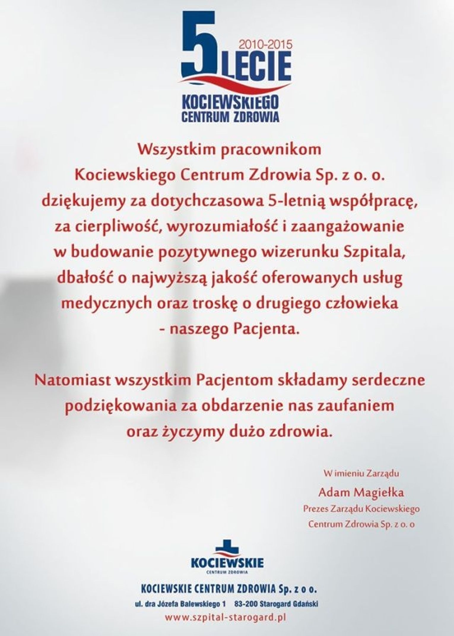 5 - lecie Kociewskiego Centrum Zdrowia - czekają atrakcje