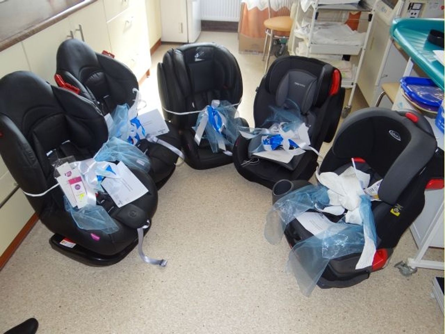 Z okazji 5 - lecia Kociewskiego Centrum Zdrowia wszyskie noworodki, które przyszły na świat w dniu jubileuszu szpitala otrzymały foteliki samochodowe.