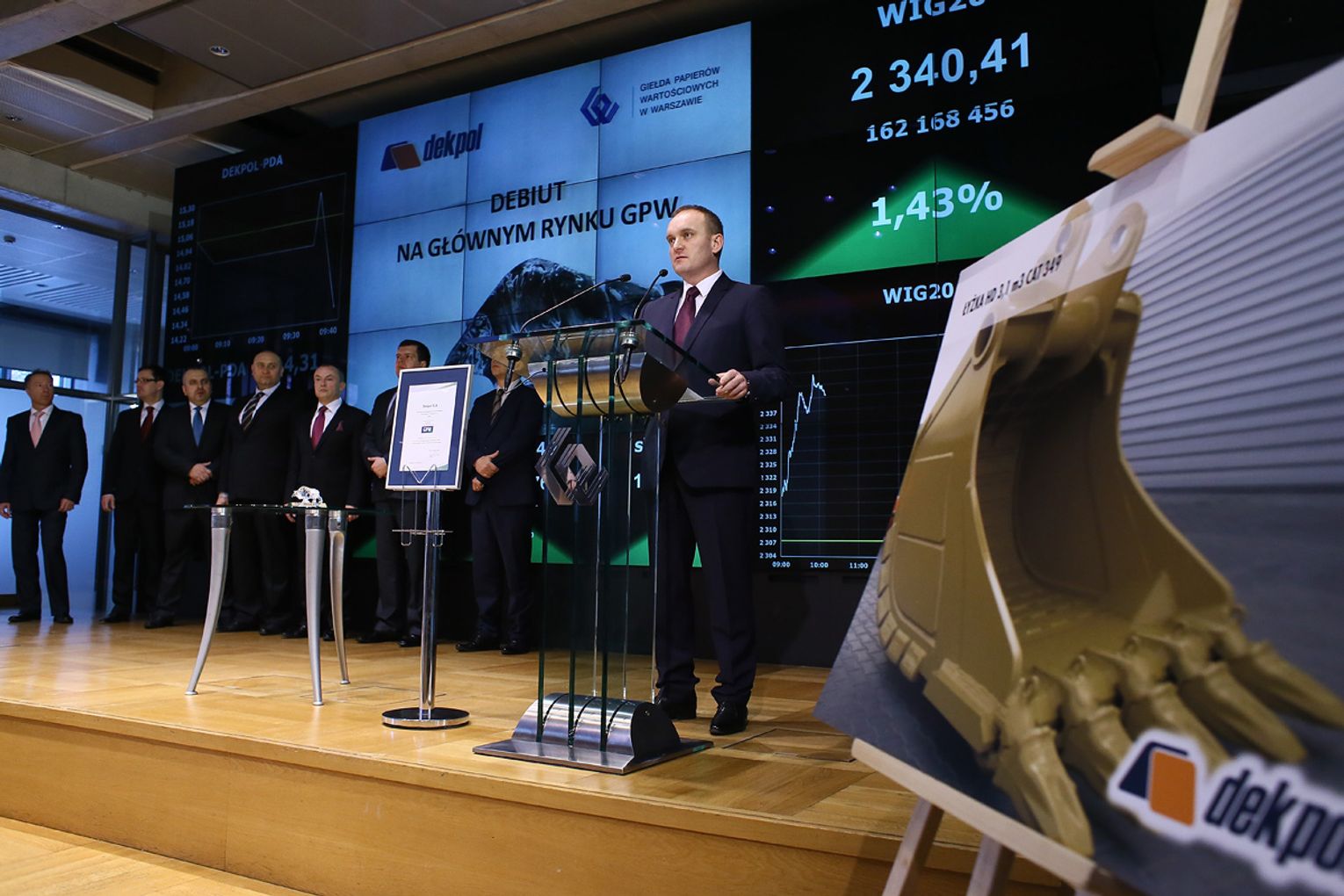 Nie ukrywam, że debiut Dekpol na Giełdzie Papierów Wartościowych był pójściem pod prąd, ponieważ debiuty Spółek deweloperskich i budowlanych w ostatnim czasie były niezwykle rzadkie ze względu na kryzys, z jakim jeszcze niedawno borykała się branża. Droga na Giełdę nie była więc łatwa. Konkurencja w branży budowlanej jest bardzo duża, dlatego liczy się przede wszystkim wiarygodność. Obecność na Giełdzie i status spółki publicznej z pewnością zwiększył rozpoznawalność Dekpol, co jest niezwykle istotne przy pozyskiwaniu prywatnych zleceń w ramach generalnego wykonawstwa. W wyniku emisji akcji udało nam się również pozyskać blisko 30 mln zł na dalszy rozwój działalności. Debiut Dekpol na GPW nie był pierwszym zetknięciem firmy z rynkiem kapitałowym. W 2012 r. Dekpol wyemitował obligacje warte 12,5 mln zł, notowane później na GPW Catalyst, rynku papierów dłużnych. W 2014 roku wyemitowaliśmy kolejną serię obligacji o wartości 20 mln zł Dzięki tym środkom możliwy był m.in. rozwój nowego segmentu działalności – produkcji osprzętu do maszyn budowlanych.
