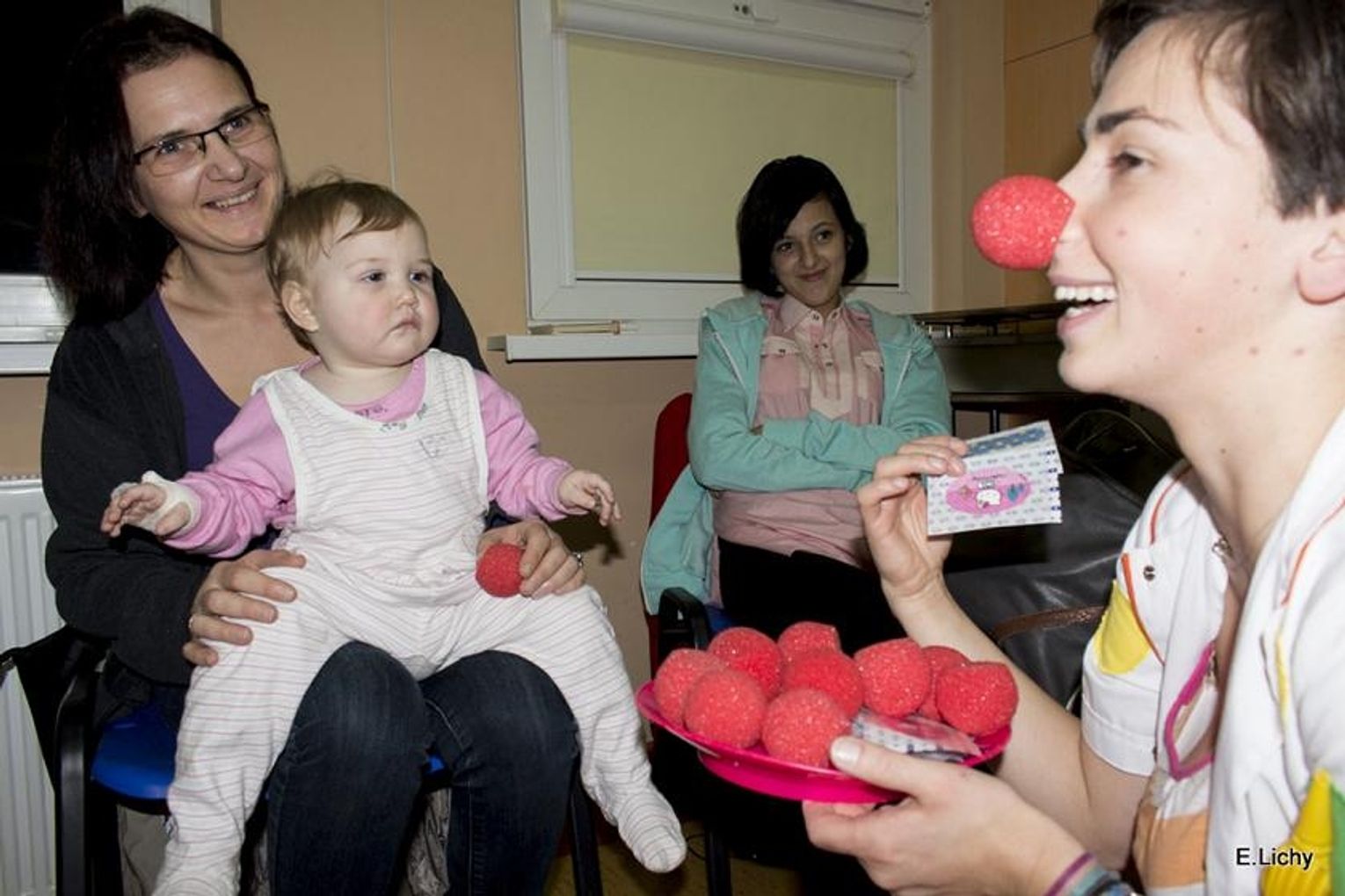 Po warsztatach rodzice wraz z nauczycielem a zarazem prowadzącym spotkanie Panem Radosławem Janickim udali się do Kociewskiego Centrum Zdrowia na oddział pediatryczny gdzie Pan Radosław Janicki pod postacią Dr. Clowna wraz z Panią Kingą, nauczycielką z przedszkola „Bajeczki „ oraz pozostałymi pomocnikami rozweselali uśmiechem małych pacjentów obdarowując ich pozytywną energią i drobnymi upominkami . Sam widok Dr. Clowna i jego pomocników wywołał na twarzach personelu, pacjentów i ich opiekunów wiele radości i uśmiechu . Młodzi pacjenci przez chwilę zapominali o swojej chorobie.