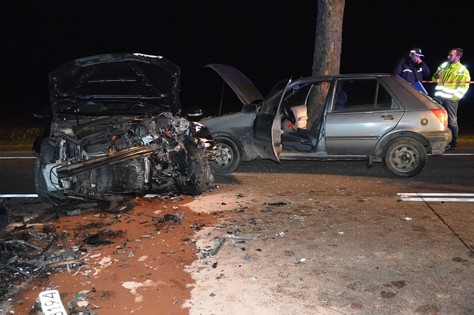 - Do naszej jednostki wpłynęło zgłoszenie o wypadku na drodze krajowej nr 22, pomiędzy Bytonią z Zblewem – relacjonuje kpt. Karina Stankowska, rzeczniczka prasowa KP PSP w Starogardzie Gd. - Dyżurny skierował na miejsce dwa zastępy z OSP Zblewo, zastęp gaśniczy z JRG Starogard Gd. Jak się okazało na miejscu zderzyły się trzy samochody osobowe, volkswagen golf, audi i ford fiesta. Nasze działania polegały na zabezpieczeniu miejsca wypadku, odłączeniu zasilania akumulatorowego i oświetleniu terenu działań. Ruch odbywa się wahadłowo. Przejazd możliwy jest tylko dla samochodów osobowych. Auta ciężarowe muszą poczekać na poboczu. W zderzeniu brało udział 7 osób, z czego 4 zostały ranne. ZRM udzielił poszkodowanym pierwszej pomocy, następnie poszkodowani zostali przewiezieni do szpitala. Na miejscu trwają czynności dochodzeniowe – dodaje kpt. Karina Stankowska.