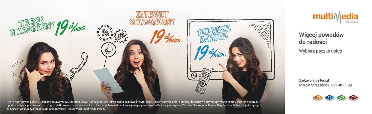 Grupa Multimedia Polska działa na polskim rynku od 25 lat. Przez ten czas zdobyliśmy zaufanie prawie miliona klientów. O tym, że Multimedia są operatorem, z którego usług warto korzystać świadczy stale wzrastająca liczba abonentów oraz skłonność do polecania naszej marki przez dotychczasowych klientów. W ostatnim czasie zostaliśmy wyróżnieni tytułem „Created in Poland Superbrands 2015/16”, w którym pod uwagę brano m.in. wspomnianą skłonność do polecania. Mówiąc najkrócej – jesteśmy dobrzy w tym co robimy, dlatego warto być w gronie naszych abonentów. Gwarantujemy nie tylko wysoką jakość usług i konkurencyjną cenę, ale przede wszystkim możemy pochwalić się stosowaniem technologii FTTH (Fiber to the Home), dzięki której – w przeciwieństwie do większości firm funkcjonujących na rynku telekomunikacyjnym – dostarczamy usługi do mieszkań abonentów za pomocą kabli światłowodowych.