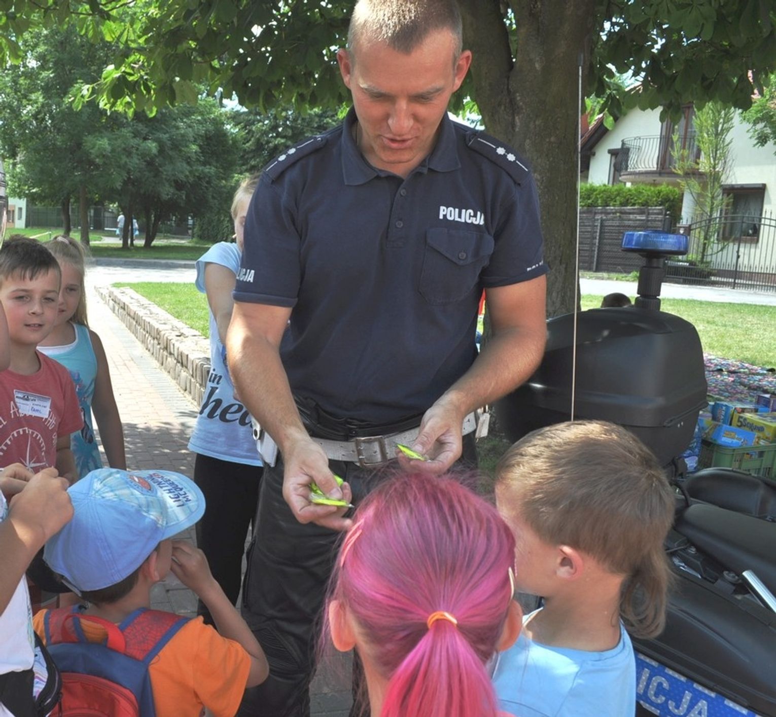 Policjanci ze starogardzkiej komendy odwiedzili dzieci, które uczestniczą w Nieobozowym Lecie - akcji organizowanej przez Spółdzielnię Mieszkaniową Kociewie. Podczas spotkania z najmłodszymi i młodzieżą funkcjonariusze opowiadali m.in. o bezpiecznych formach wypoczynku nad wodą oraz zagrożeniach, jakie mogą zdarzyć się w czasie wakacji.