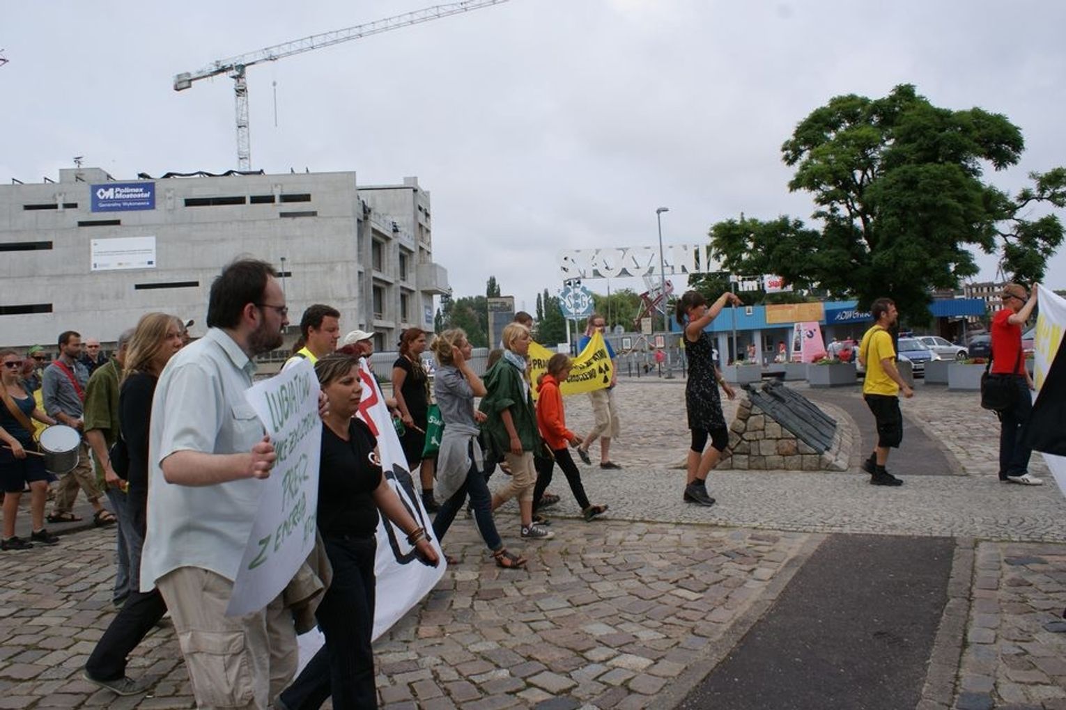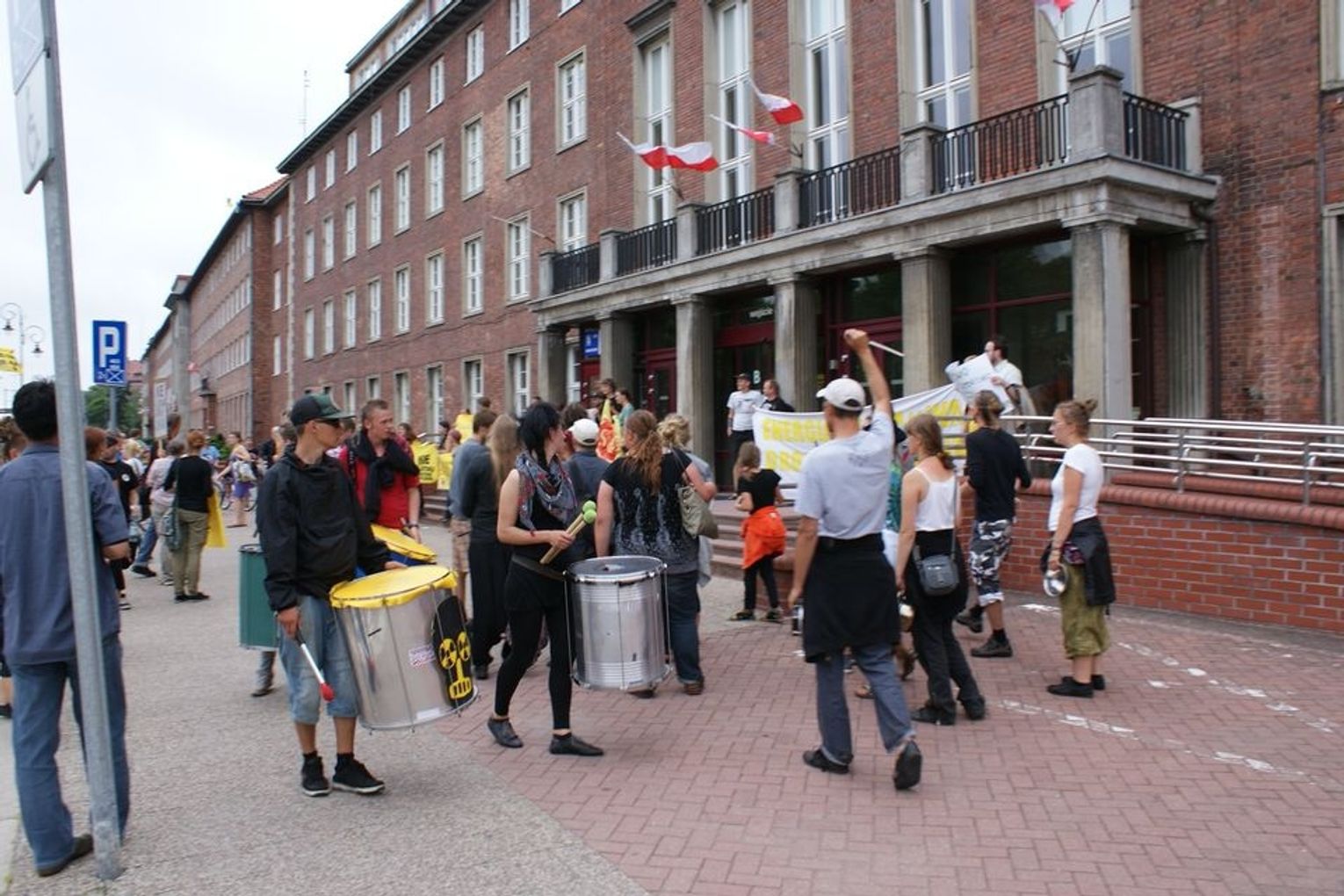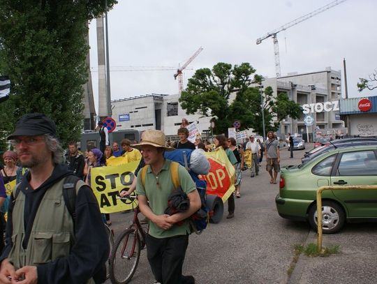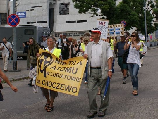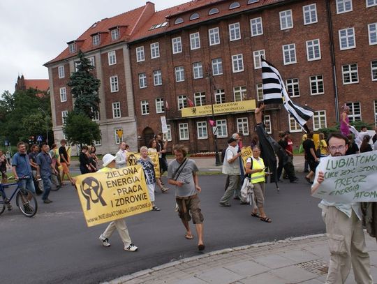 Tam pod Trzema Krzyżami przez godzinę trwał wiec. Następnie protestujący przeszli ulicami Gdańska pod Urząd Wojewódzki. W manifestacji udział wzięło ok. 200 osób. Uczestnicy demonstracji to głównie osoby, które miniony tydzień spędzili na Obozie Antyatomowym Lubiatowo 2012. Manifestowali także mieszkańcy gmin zagrożonych budową elektrowni jądrowych, działacze organizacji ekologicznych i ruchów społecznych, anarchiści, eksperci zajmujący się zagrożeniami jakie niesie ze sobą energetyka jądrowa i mieszkańcy Trójmiasta. Demonstrującym towarzyszyła grupa bębniarzy samby ulicznej oraz białoruski teatr Kryly Halopa, którego aktorzy przeszli trasę na szczudłach.