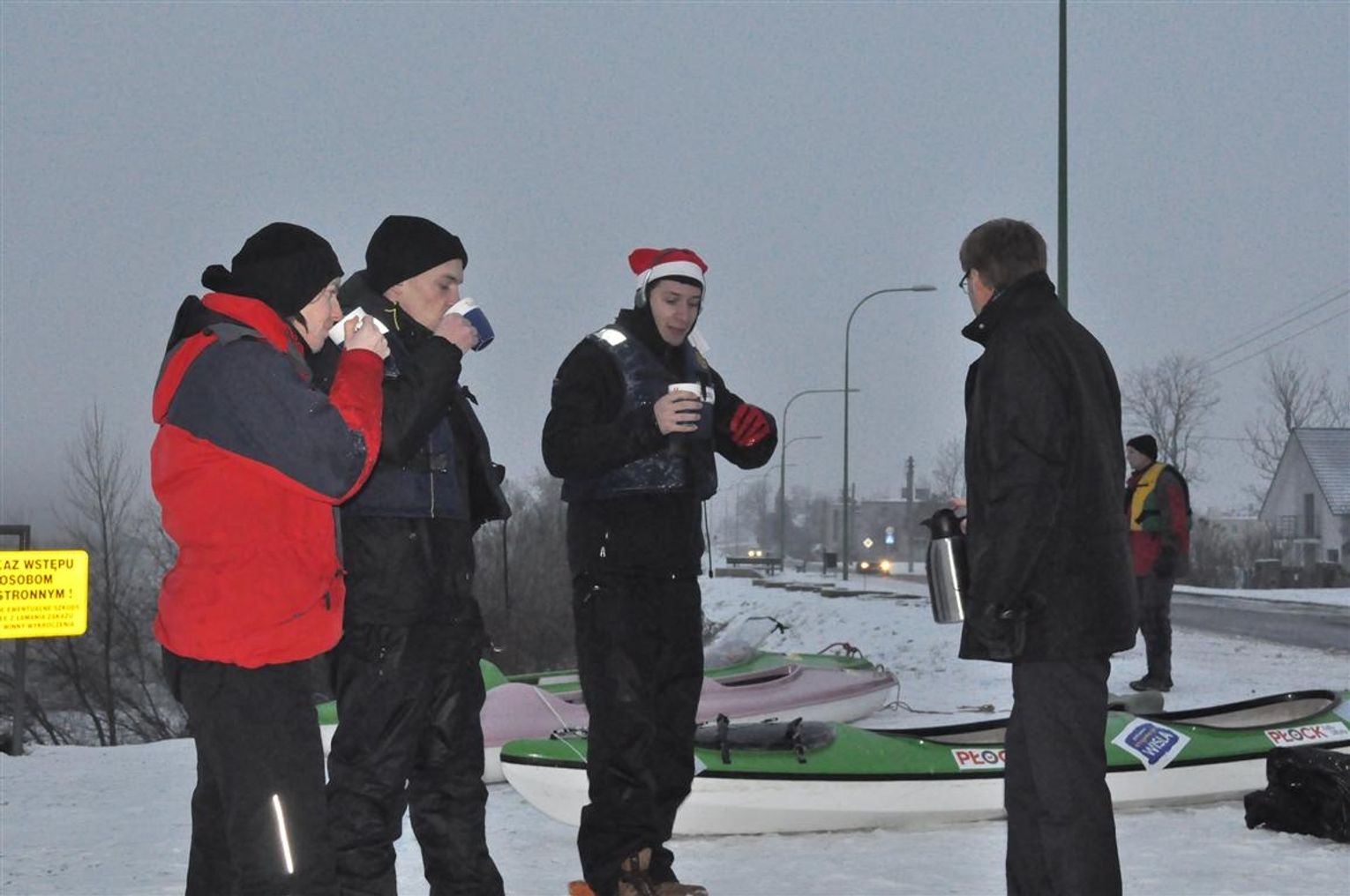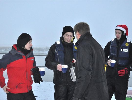 Czterech kajakarzy dopłynęło dziś do Tczewa, gdzie zostali przywitani przez wiceprezydenta Zenona Drewę gorącą herbatą. Tylko dziś pokonali ok. 55 km z Nowego. To już prawie koniec ich wyprawy w trudnym warunkach.