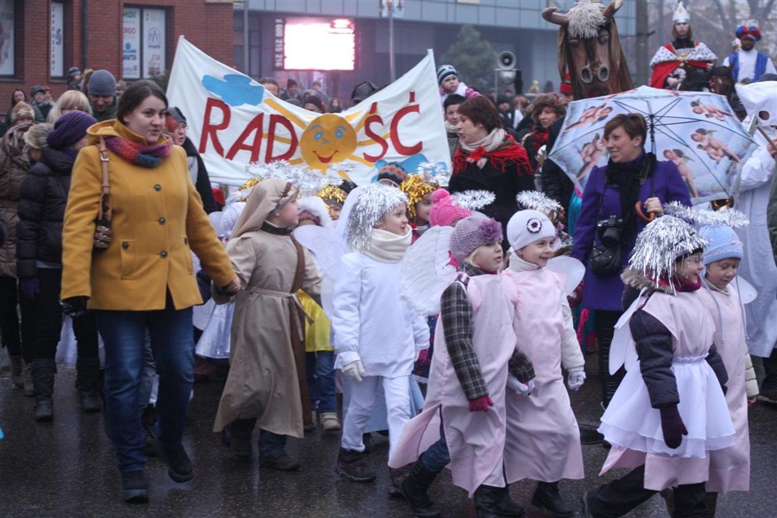 Tego jeszcze w Kwidzynie nie było. Do „żywej” szopki postawionej przez kwidzyńskich franciszkanów przed kościołem pw. św. Trójcy, przybyli na koniach Trzej Królowie, aby symbolicznie złożyć dary Nowonarodzonemu Dziecięciu. Przybyłym królom towarzyszył równie efektowny orszak osób przebranych w stroje jasełkowe.