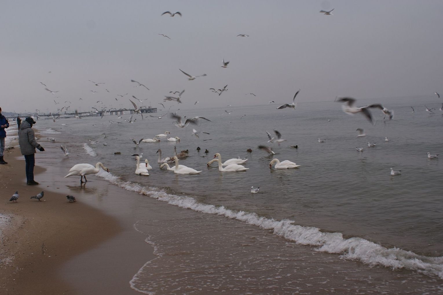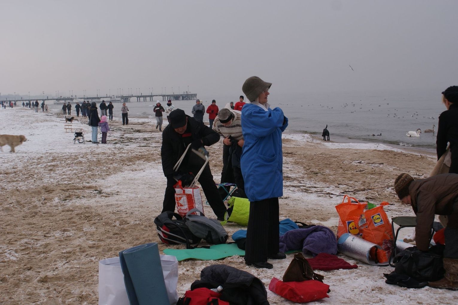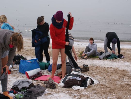 Niedziela, w południe, plaża w Brzeźnie - czas na relaks w lodowatym morzu