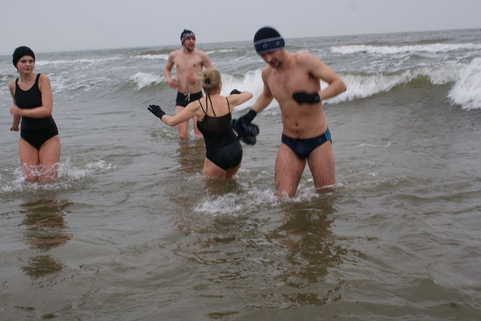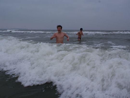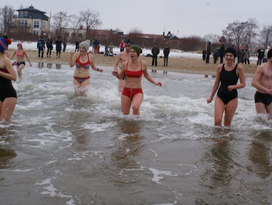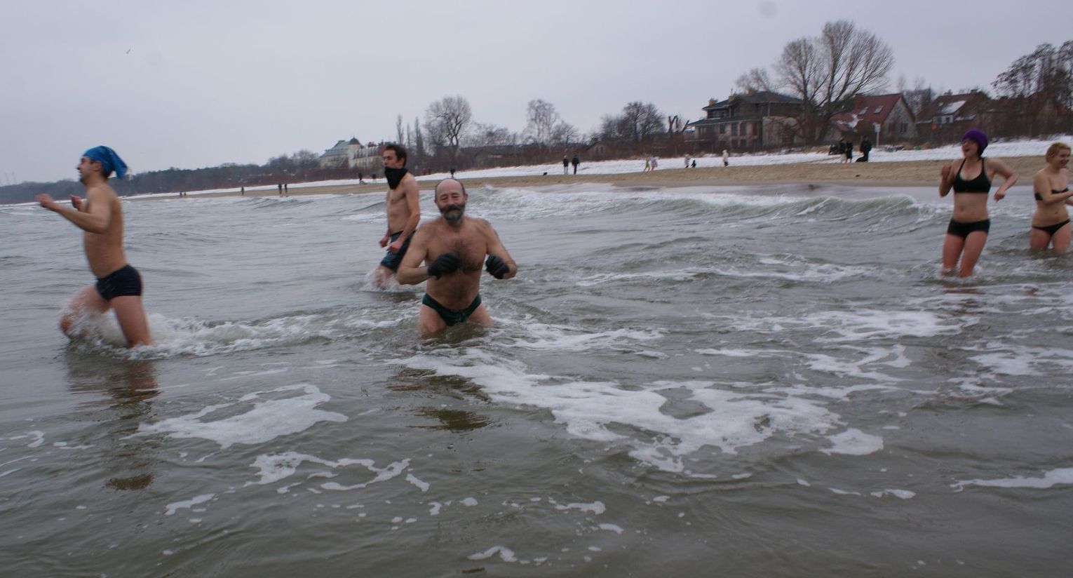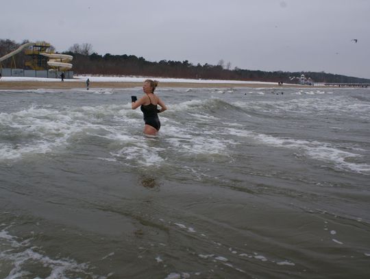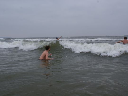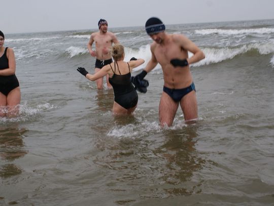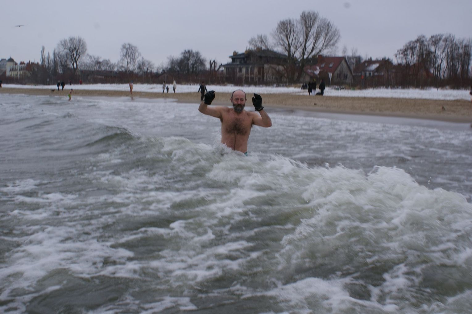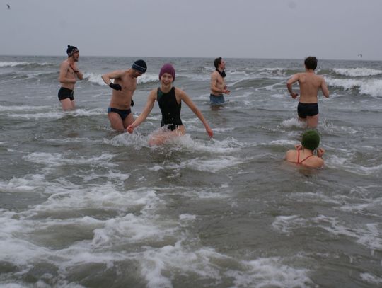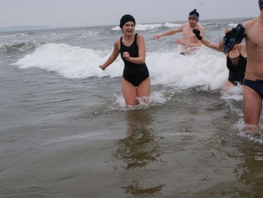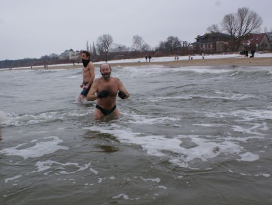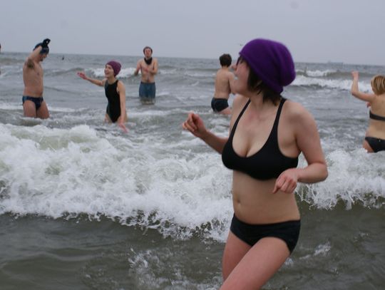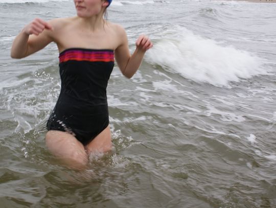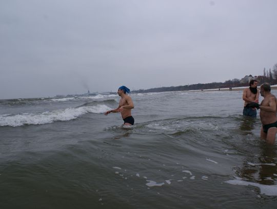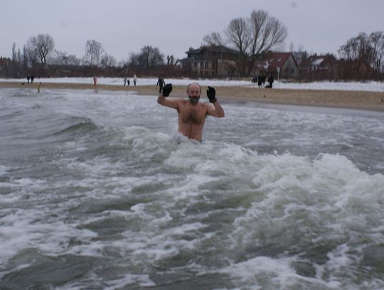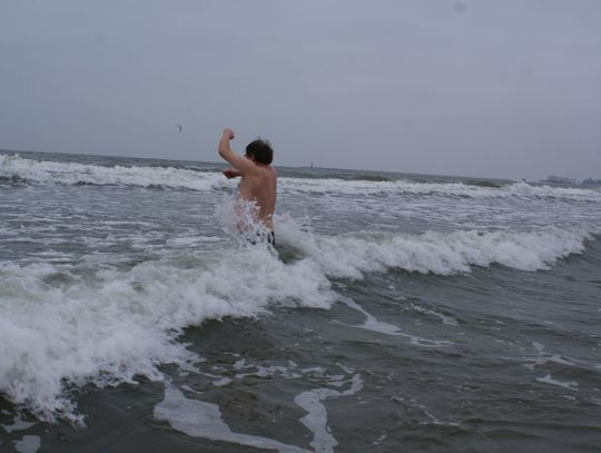 W Brzeźnie, na plaży coraz więcej chętnych do kąpieli w lodowatej wodzie. W niedzielę była wysoka fala i wspaniała zabawa. Temperatura jak dla morsów "letnia" - "tylko" minus 2 stopnie.