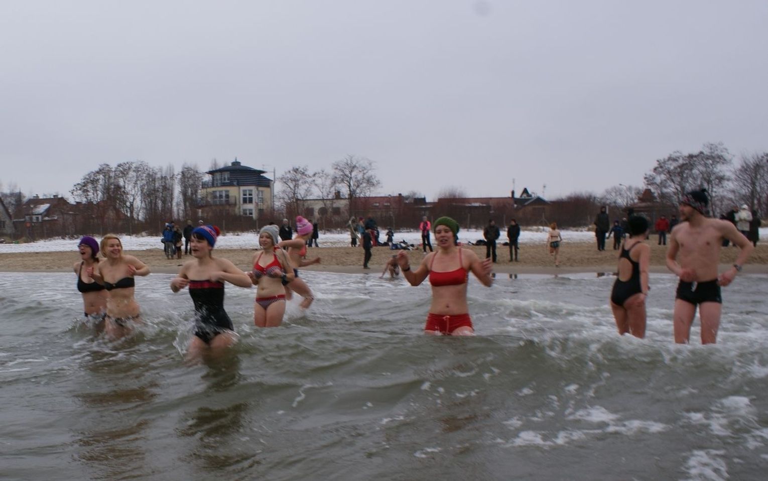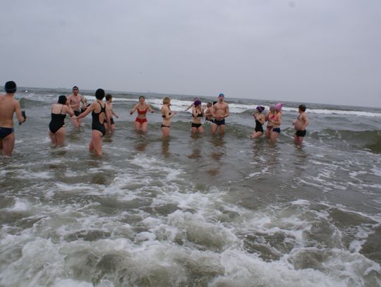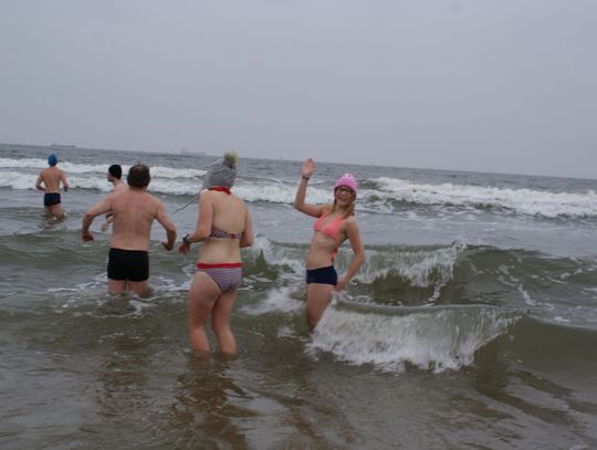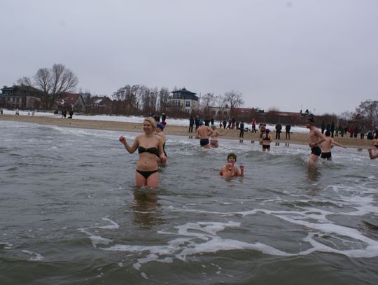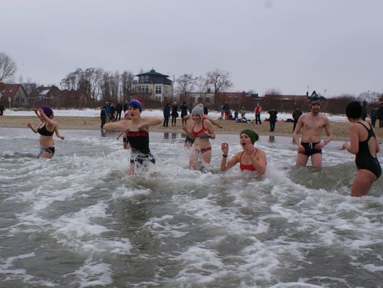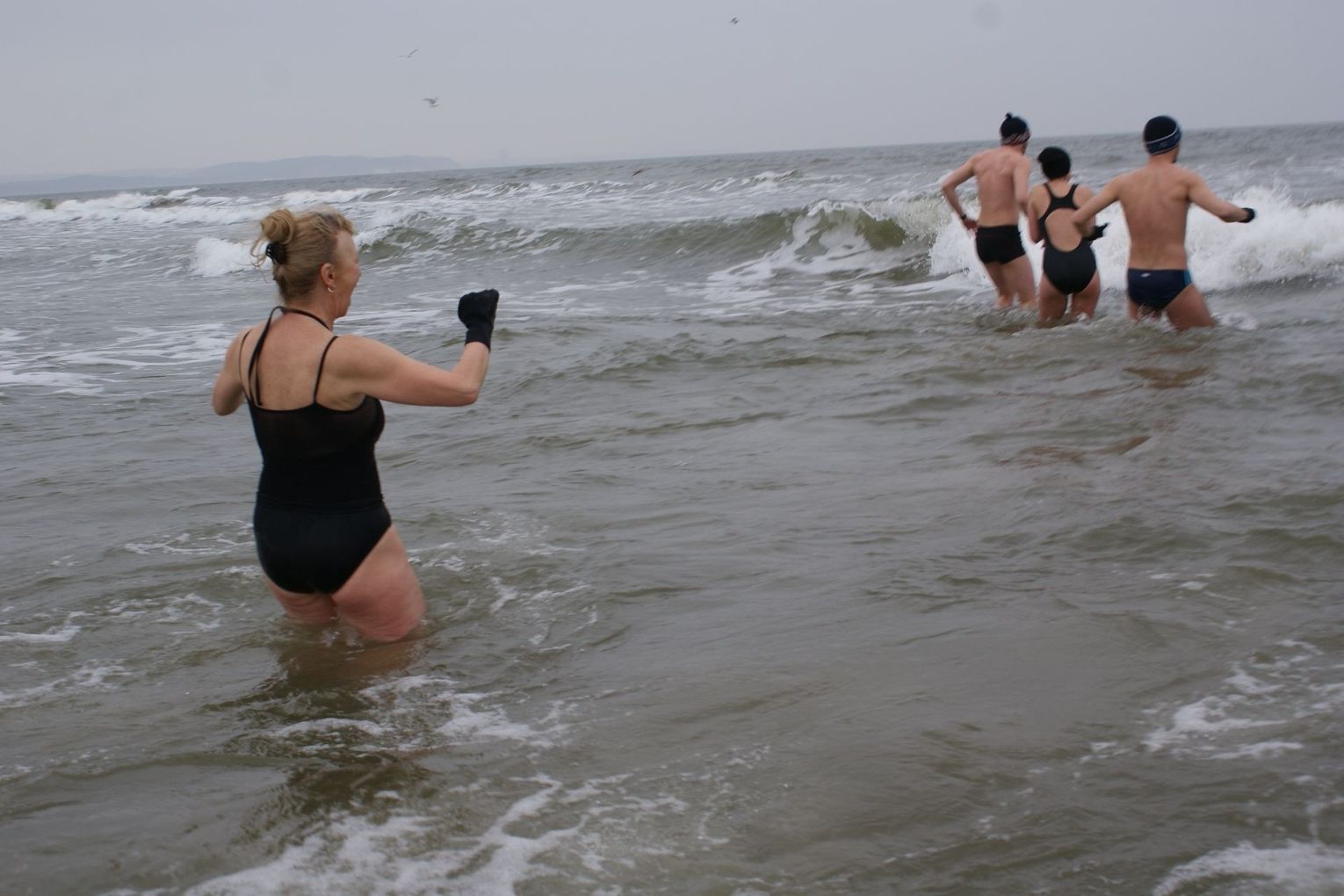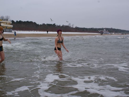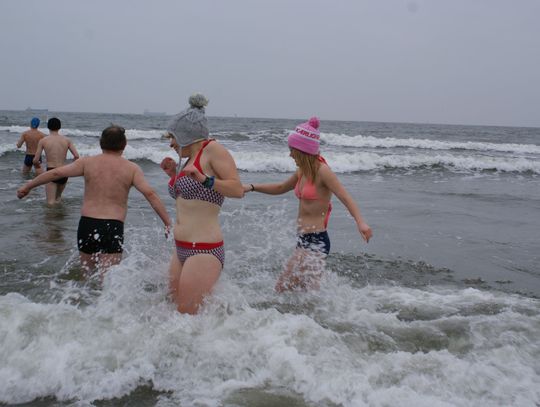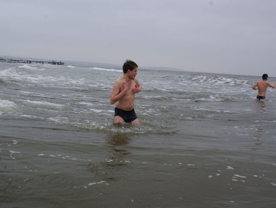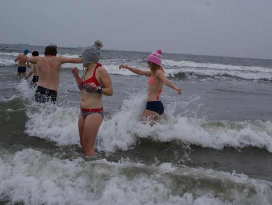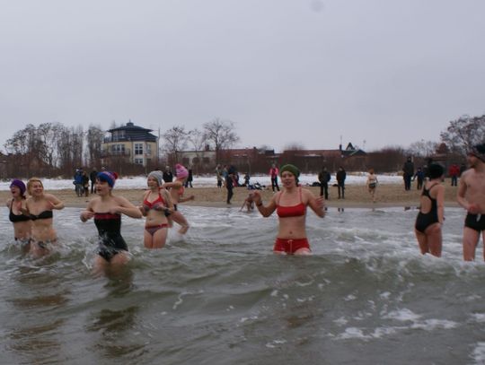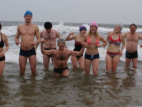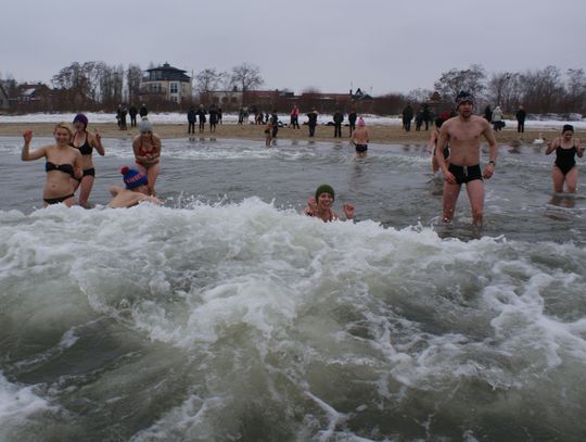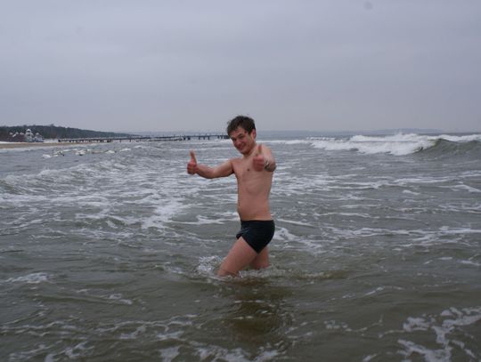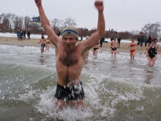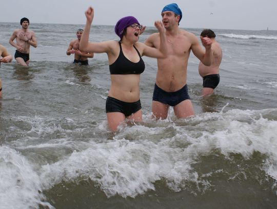 W Brzeźnie, na plaży coraz więcej chętnych do kąpieli w lodowatej wodzie. W niedzielę była wysoka fala i wspaniała zabawa. Temperatura jak dla morsów "letnia" - "tylko" minus 2 stopnie.