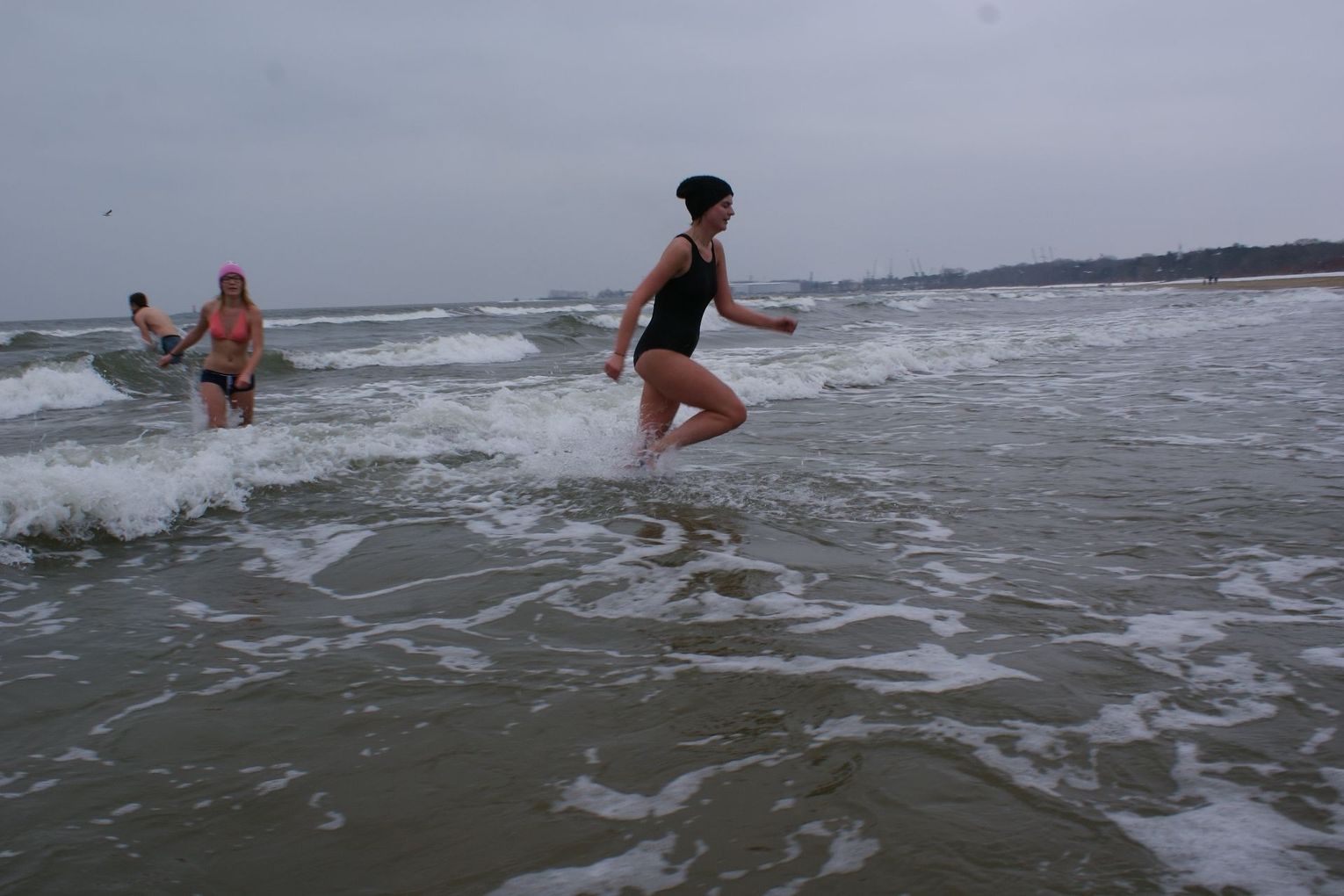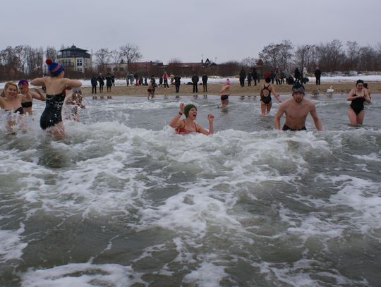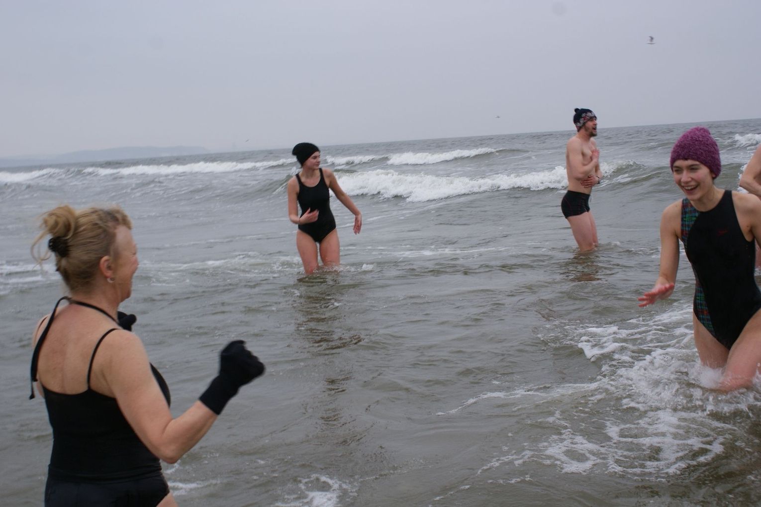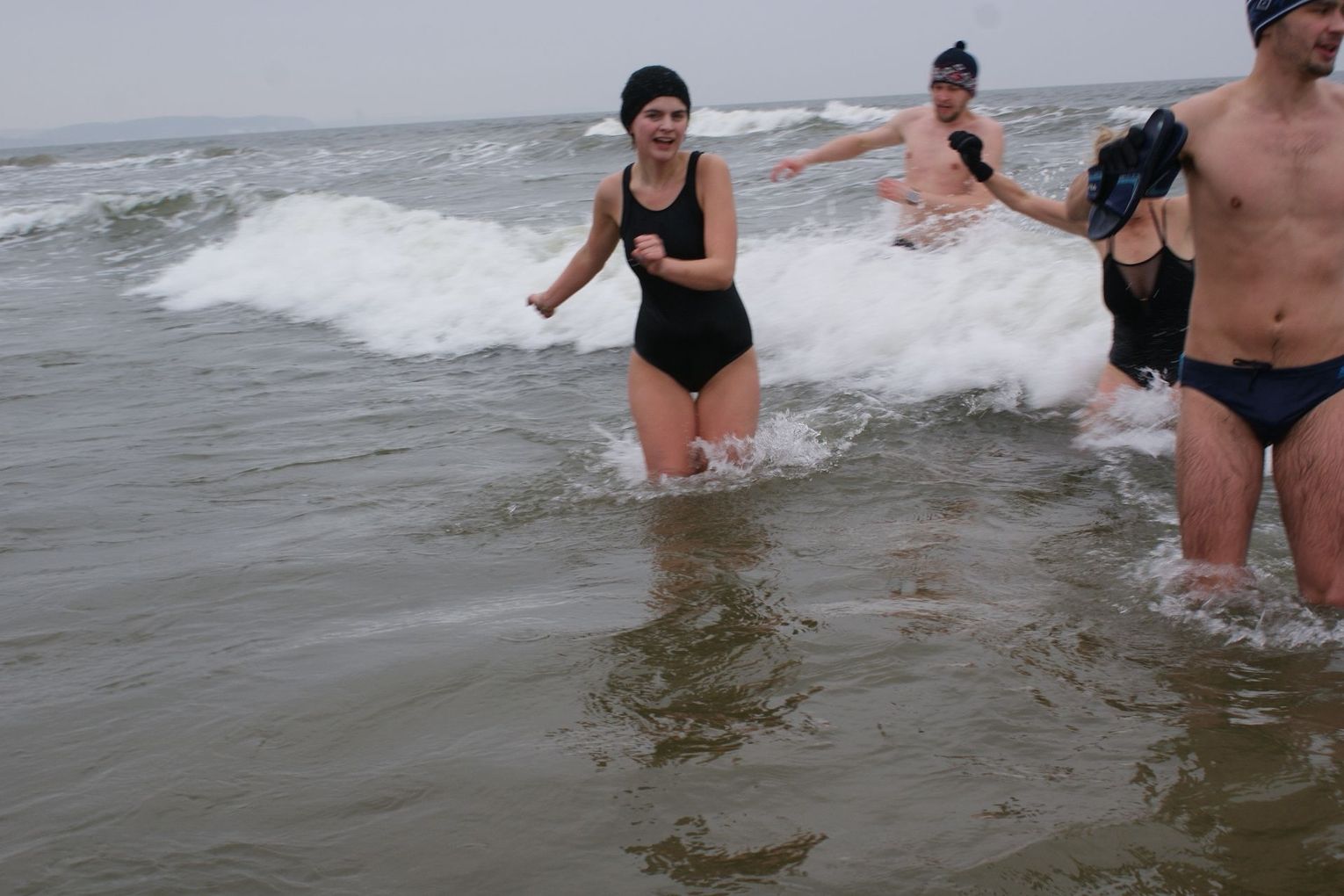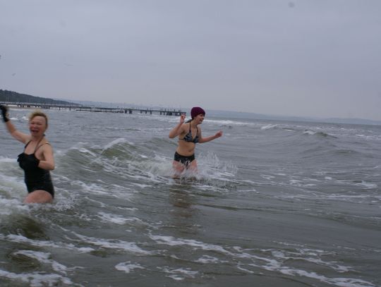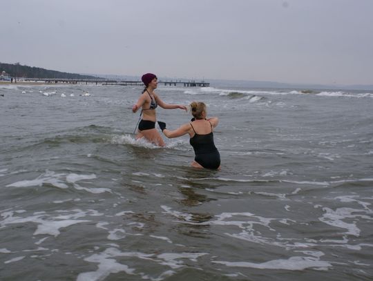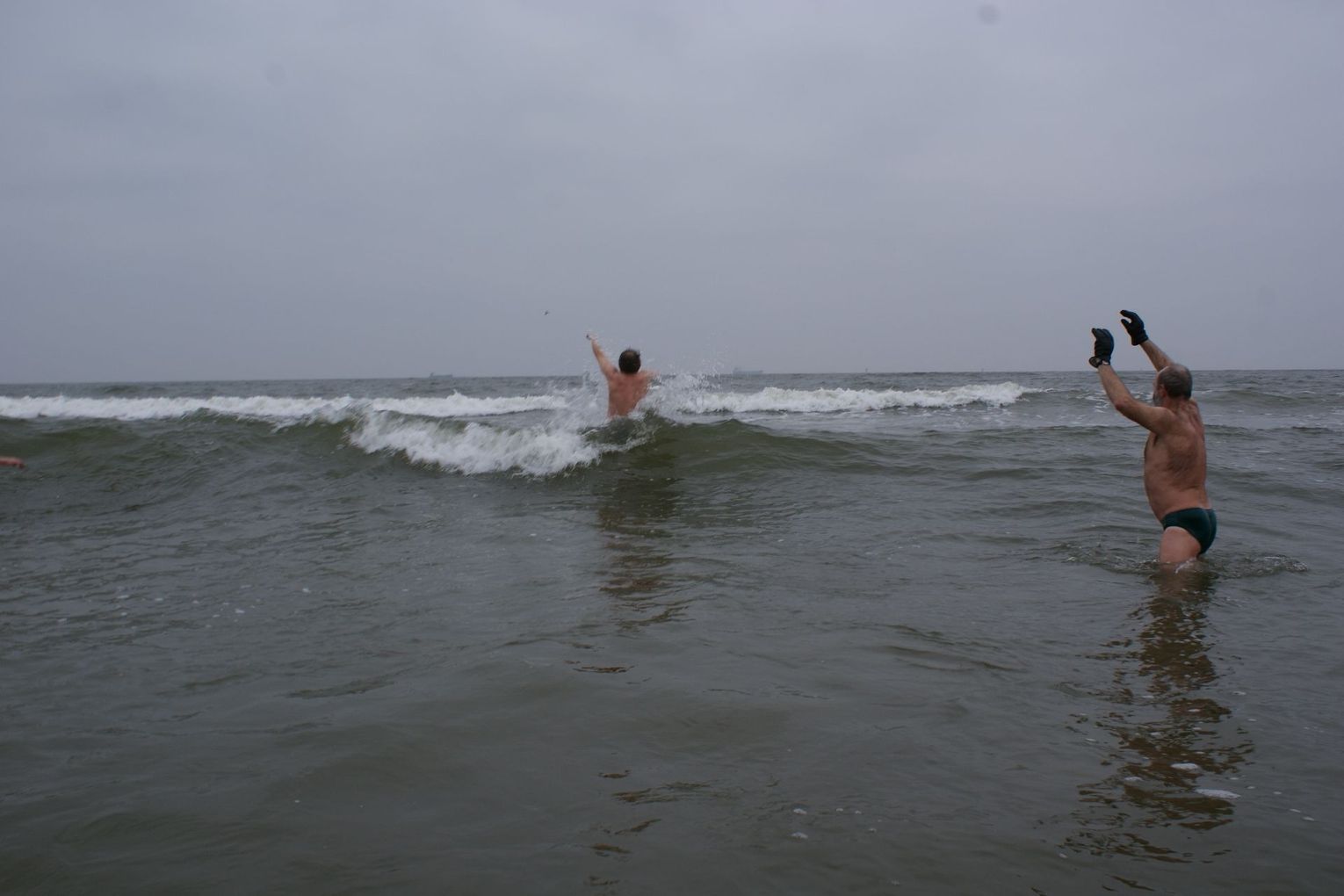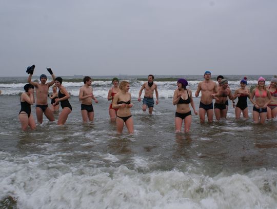 W Brzeźnie, na plaży coraz więcej chętnych do kąpieli w lodowatej wodzie. W niedzielę była wysoka fala i wspaniała zabawa. Temperatura jak dla morsów "letnia" - "tylko" minus 2 stopnie.