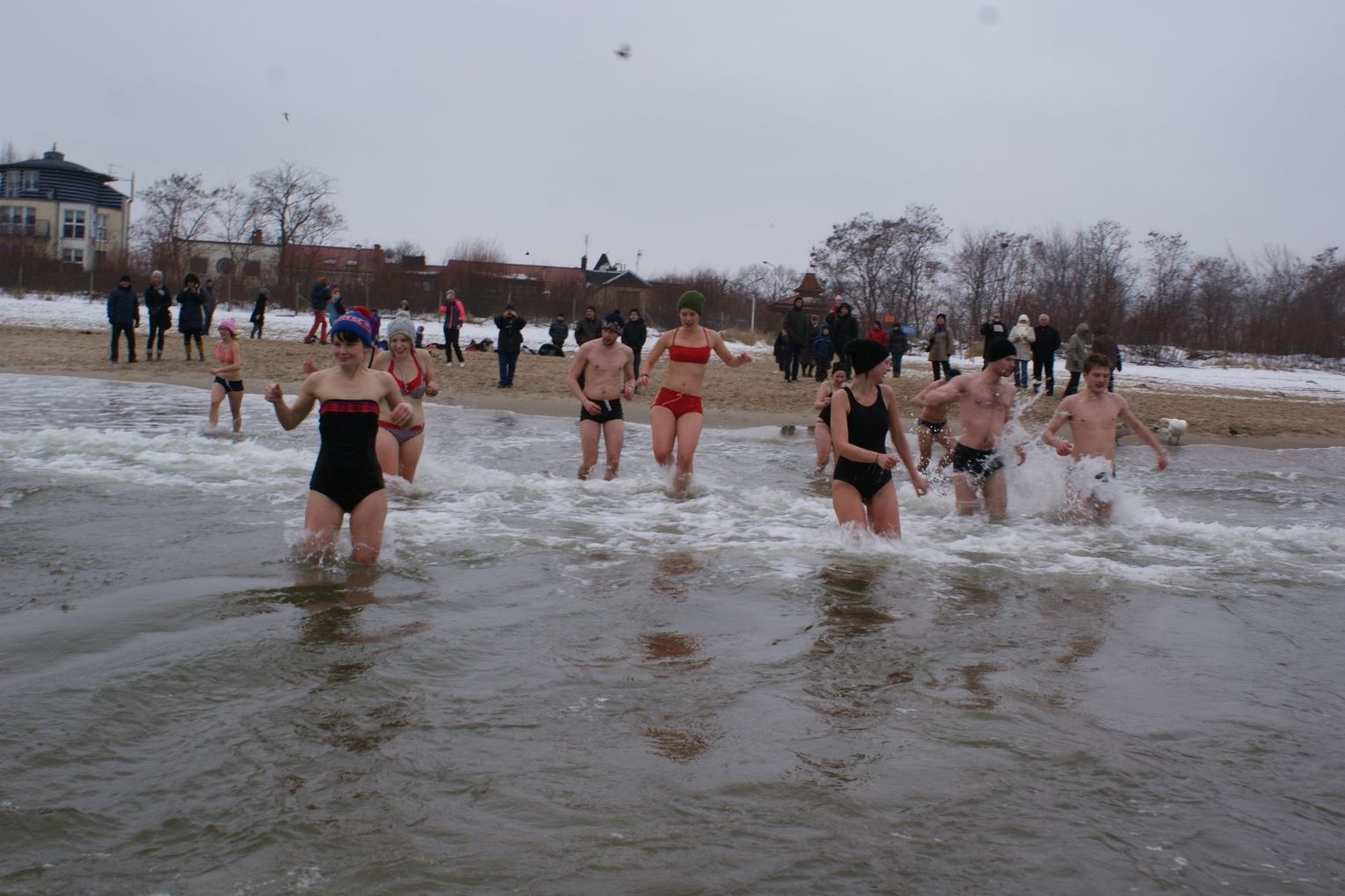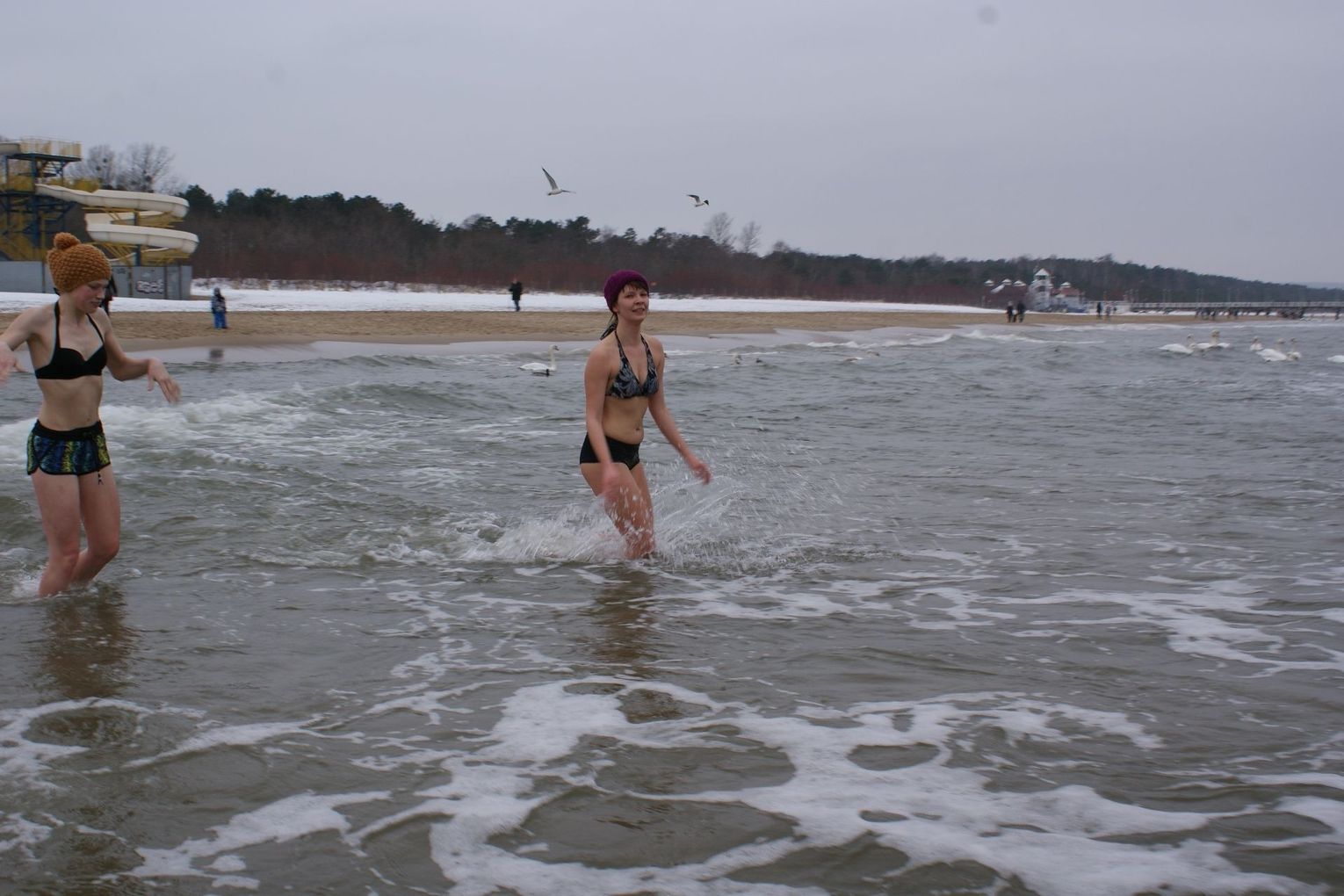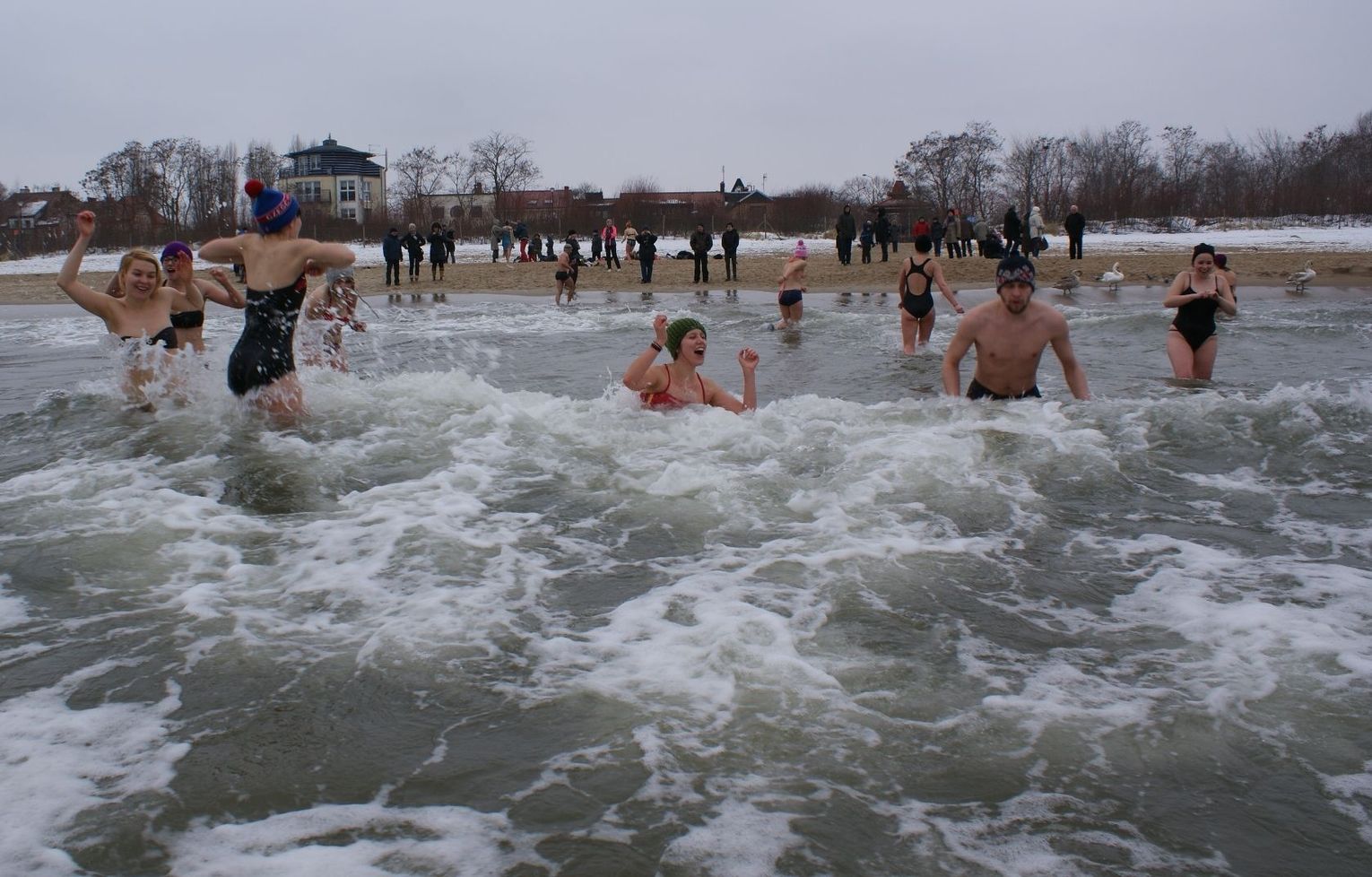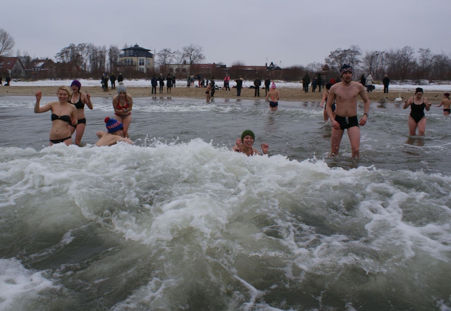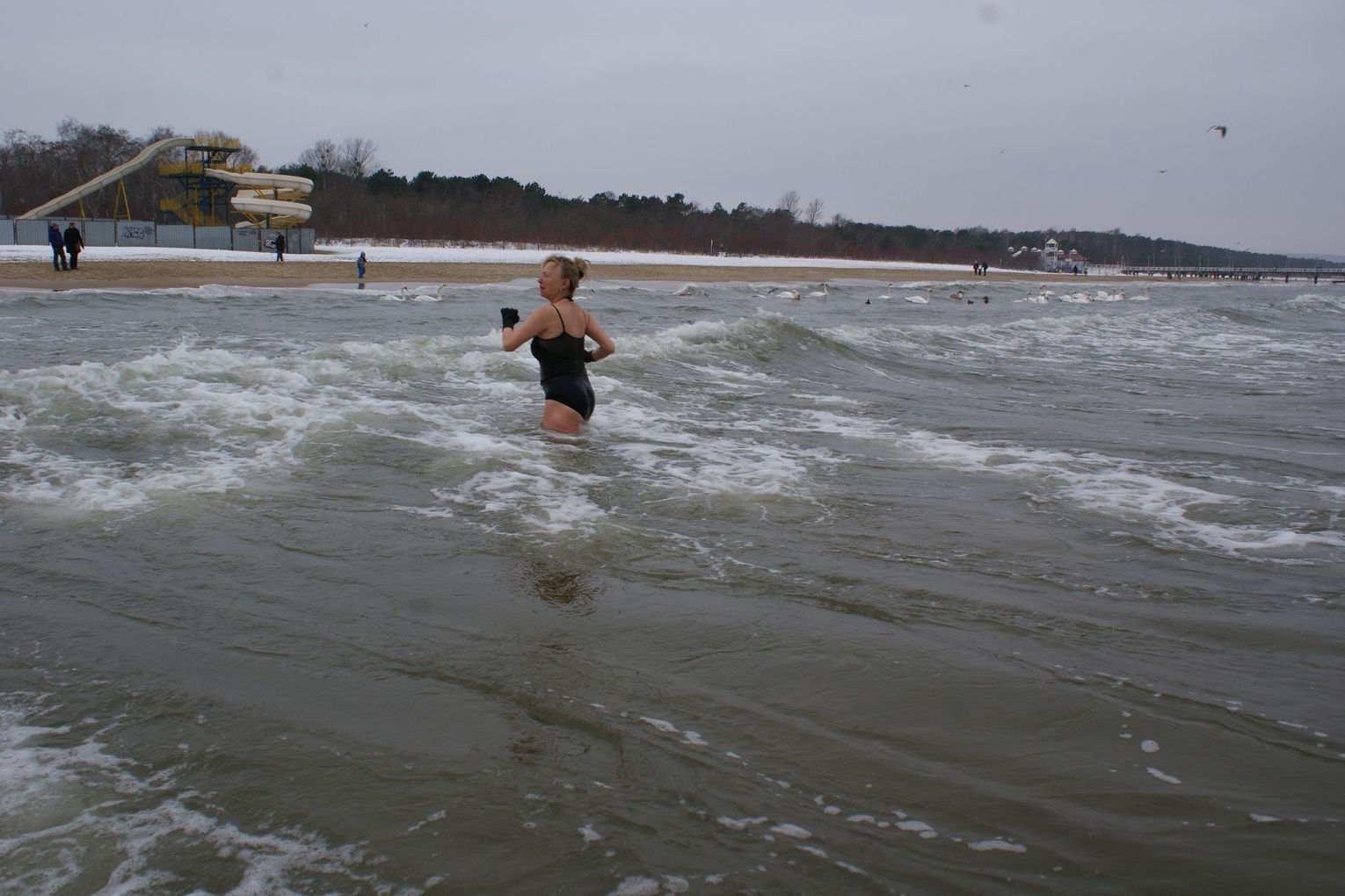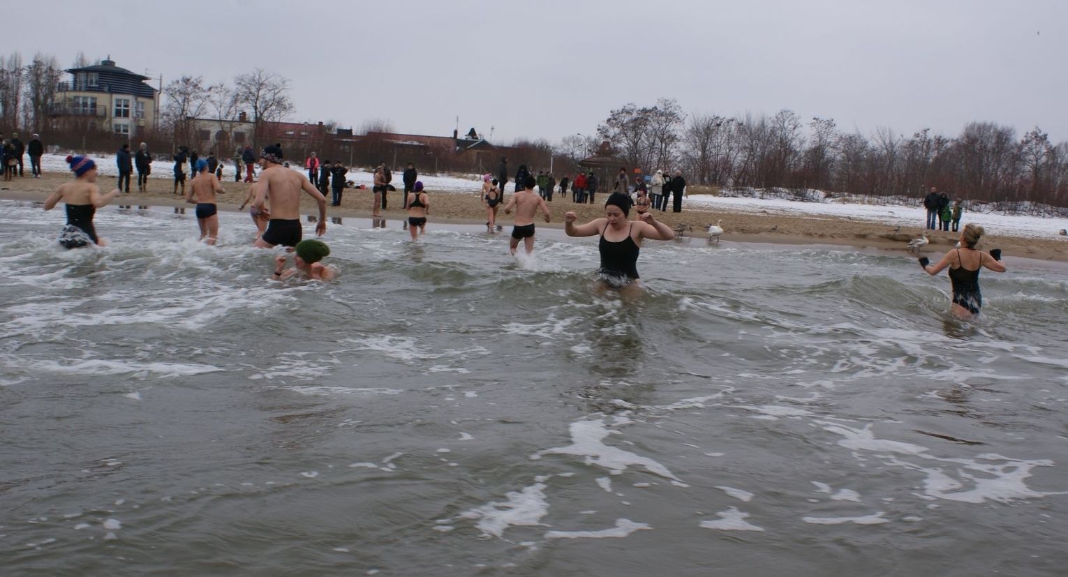 W Brzeźnie, na plaży coraz więcej chętnych do kąpieli w lodowatej wodzie. W niedzielę była wysoka fala i wspaniała zabawa. Temperatura jak dla morsów "letnia" - "tylko" minus 2 stopnie.