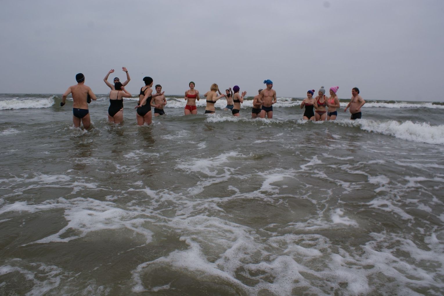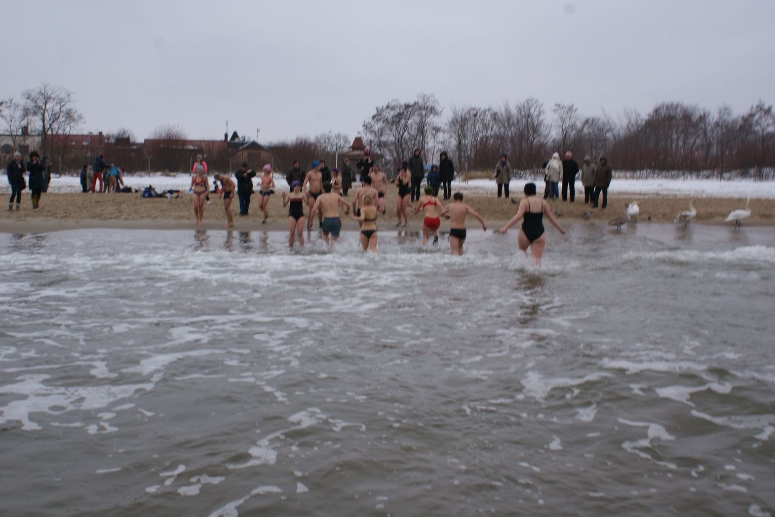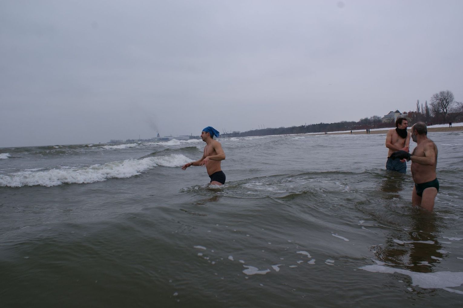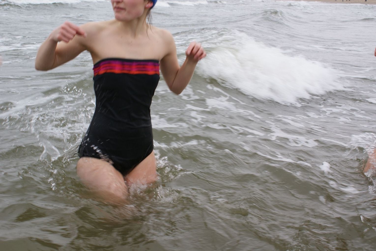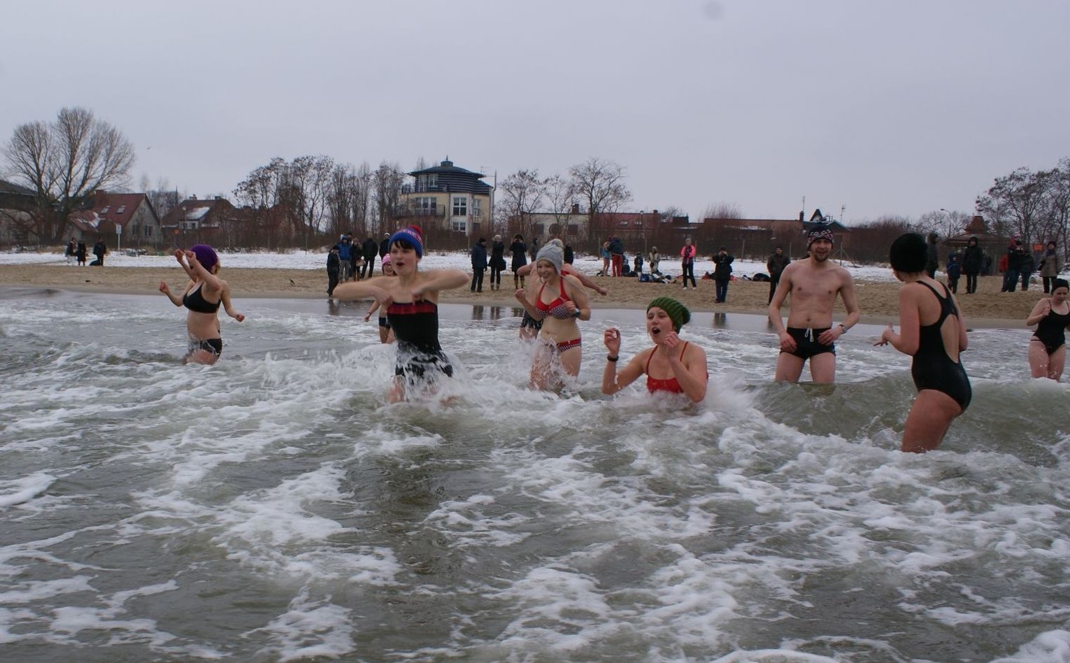 W Brzeźnie, na plaży coraz więcej chętnych do kąpieli w lodowatej wodzie. W niedzielę była wysoka fala i wspaniała zabawa. Temperatura jak dla morsów "letnia" - "tylko" minus 2 stopnie.