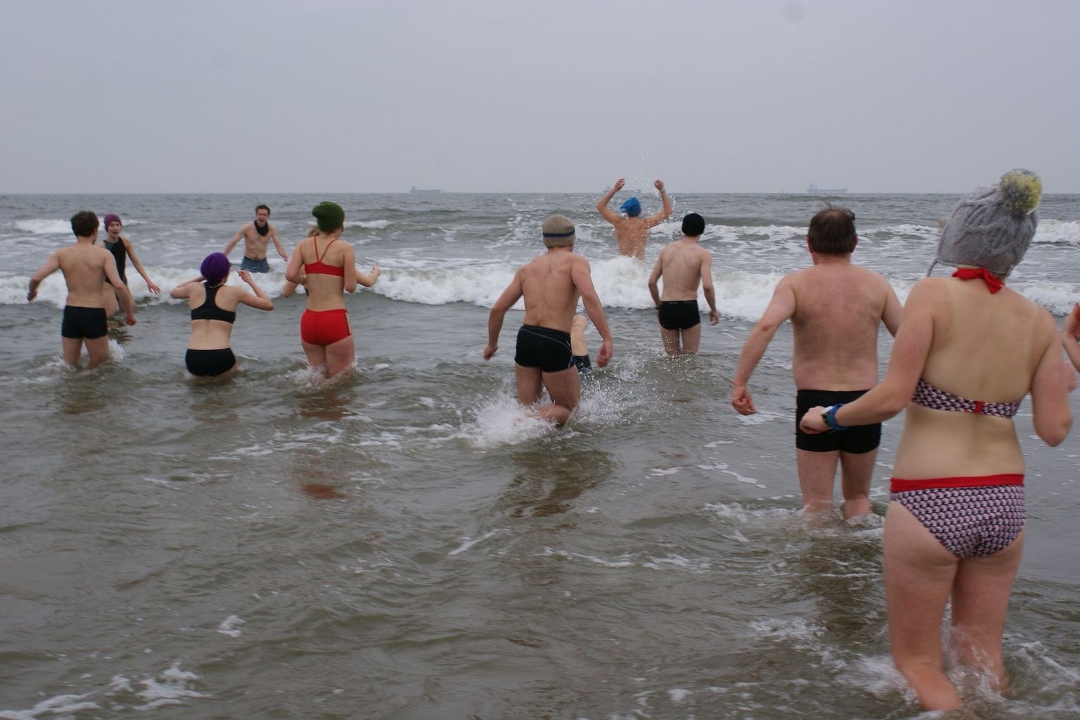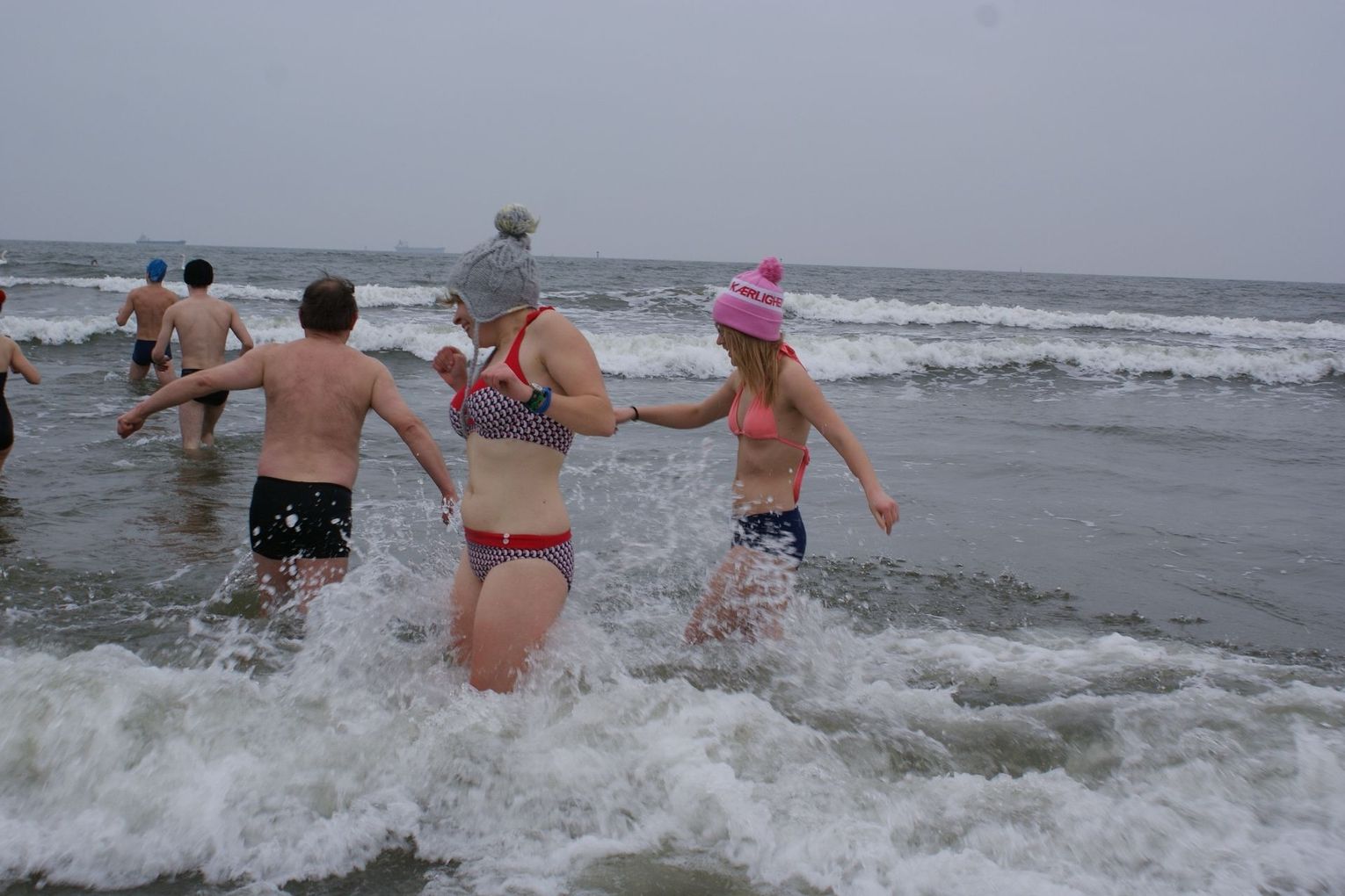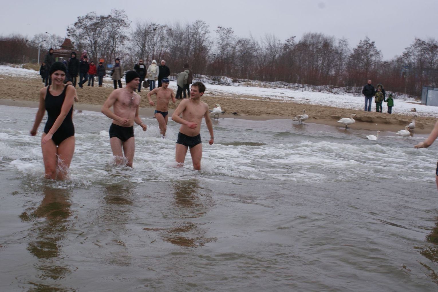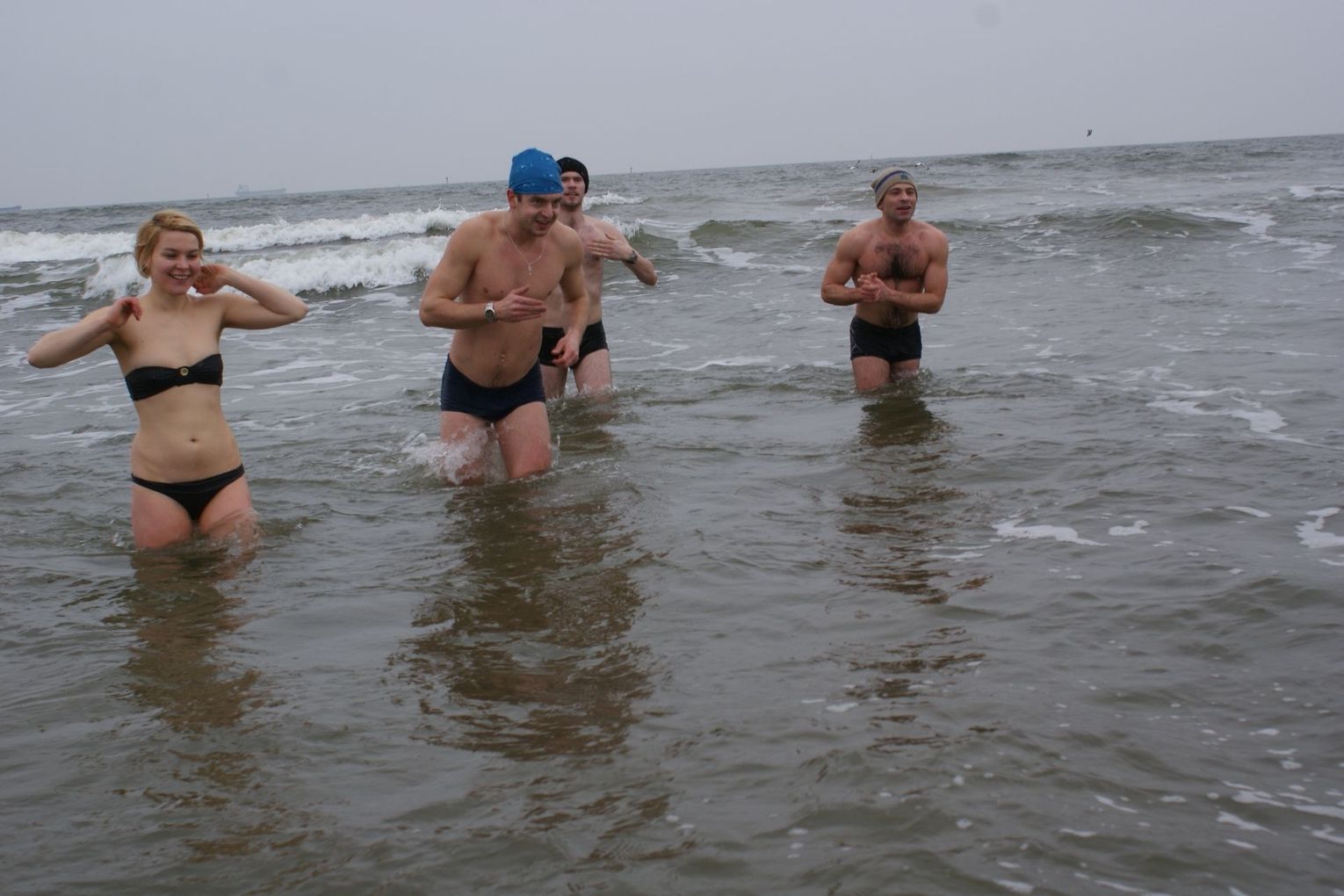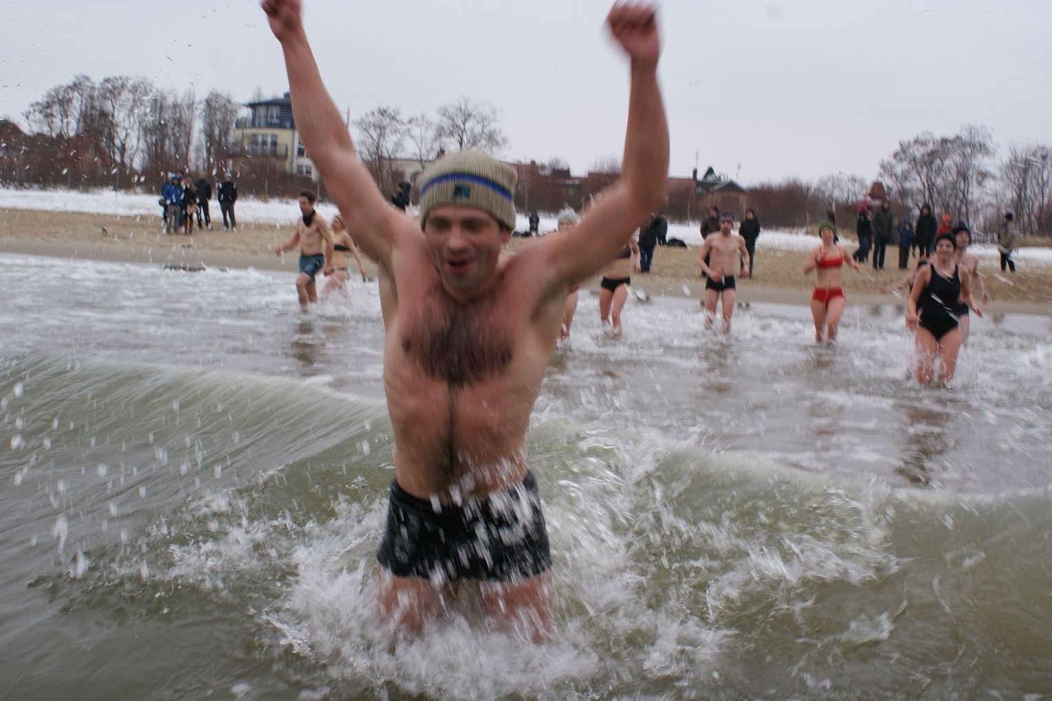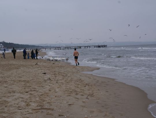 W Brzeźnie, na plaży coraz więcej chętnych do kąpieli w lodowatej wodzie. W niedzielę była wysoka fala i wspaniała zabawa. Temperatura jak dla morsów "letnia" - "tylko" minus 2 stopnie.