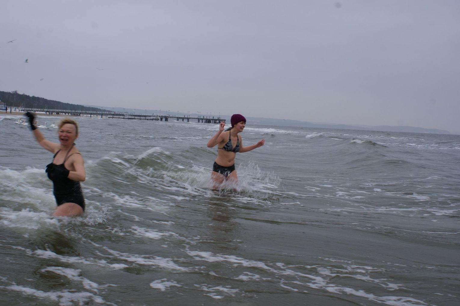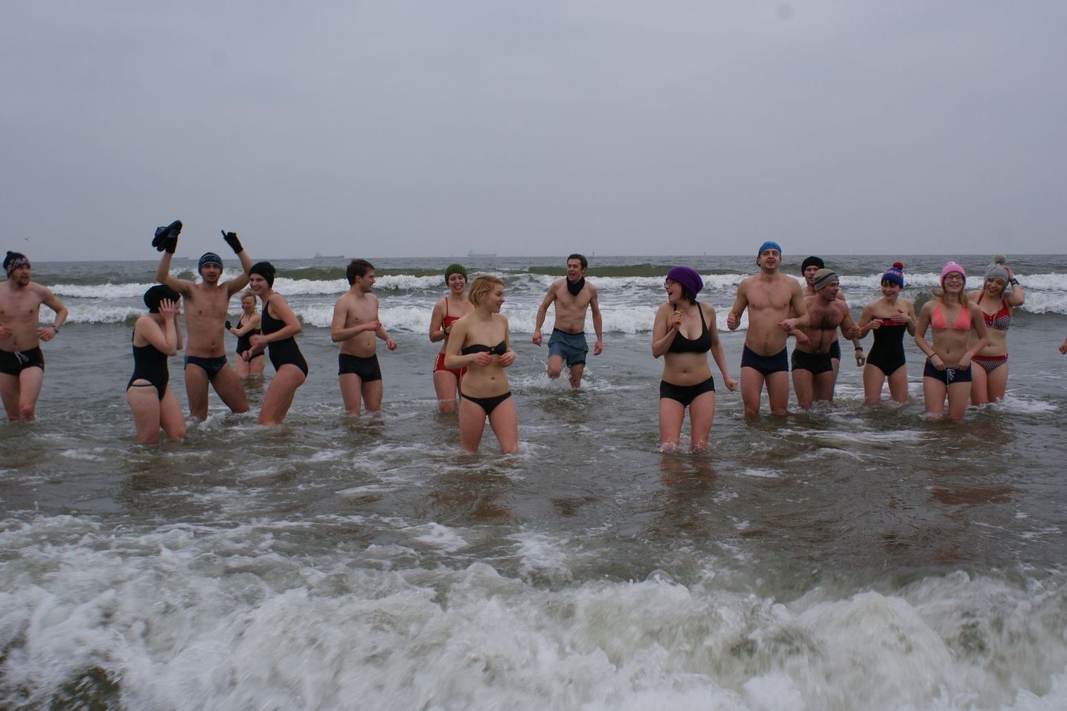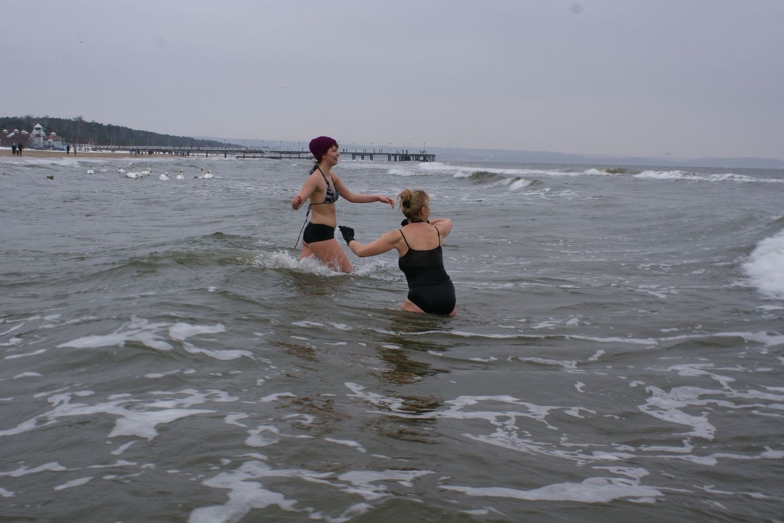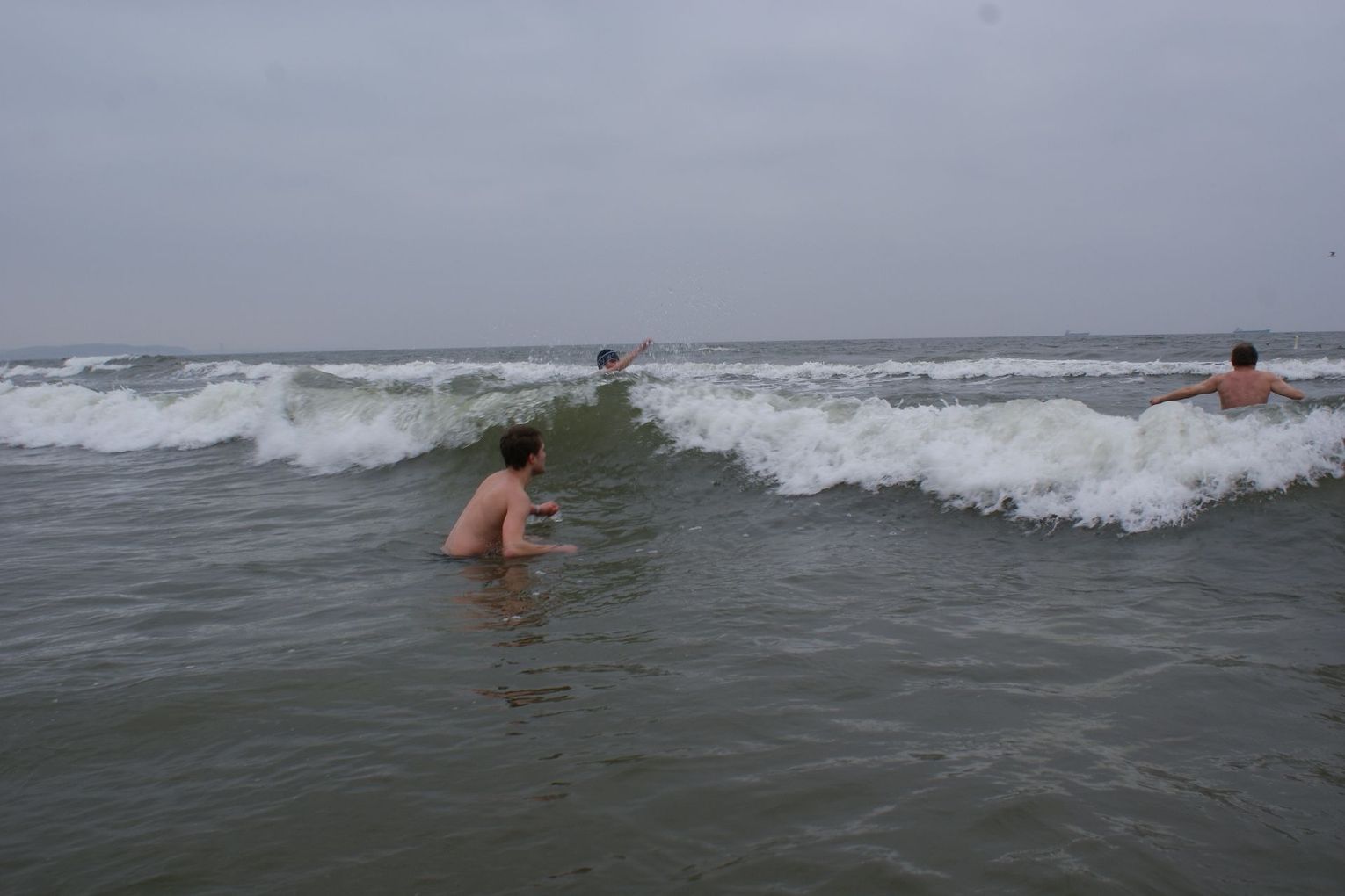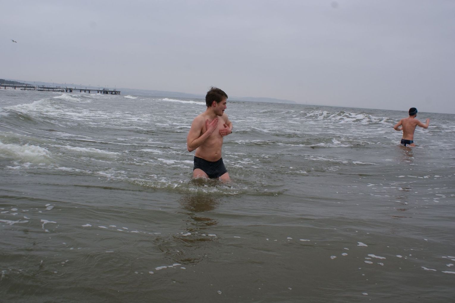 W Brzeźnie, na plaży coraz więcej chętnych do kąpieli w lodowatej wodzie. W niedzielę była wysoka fala i wspaniała zabawa. Temperatura jak dla morsów "letnia" - "tylko" minus 2 stopnie.